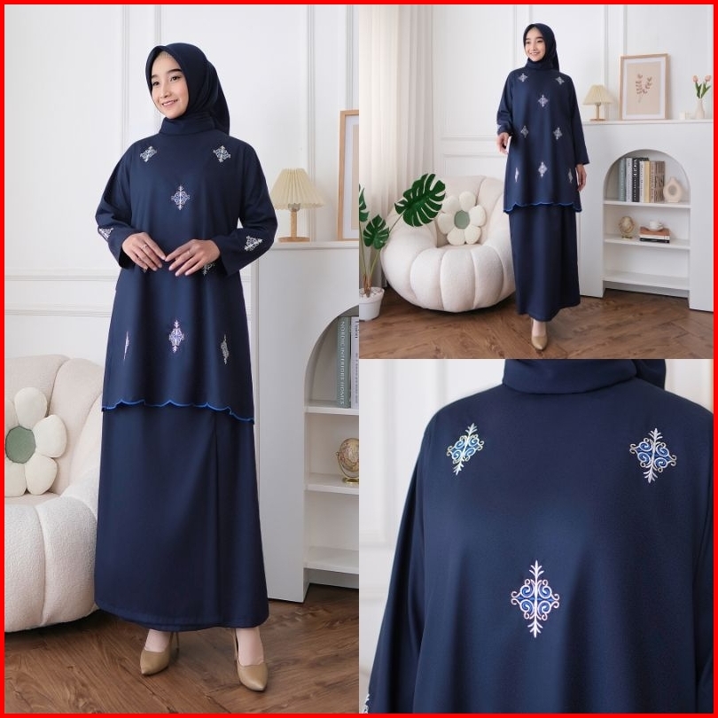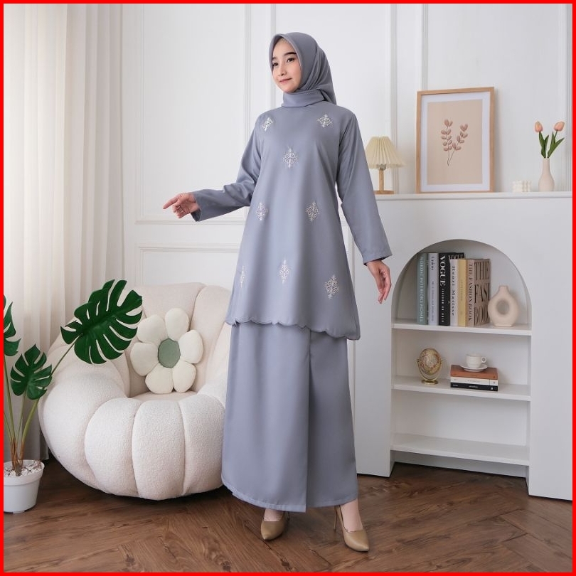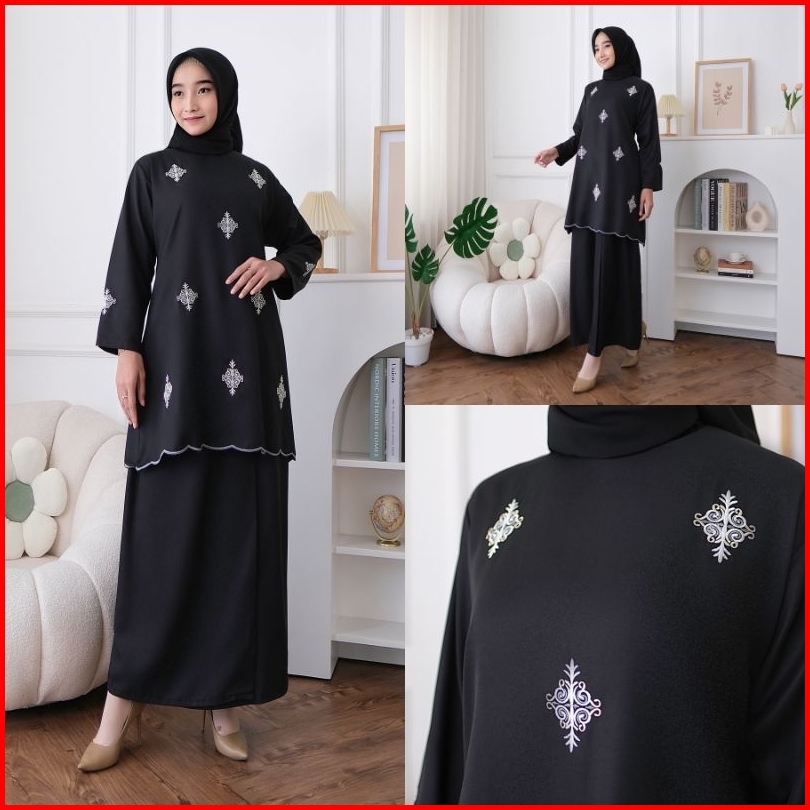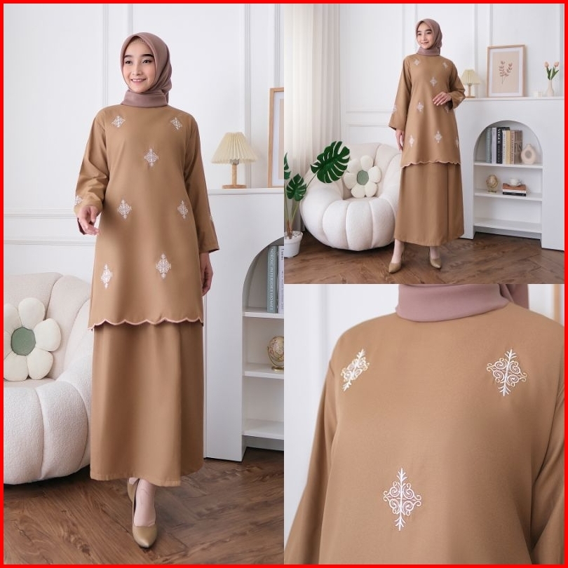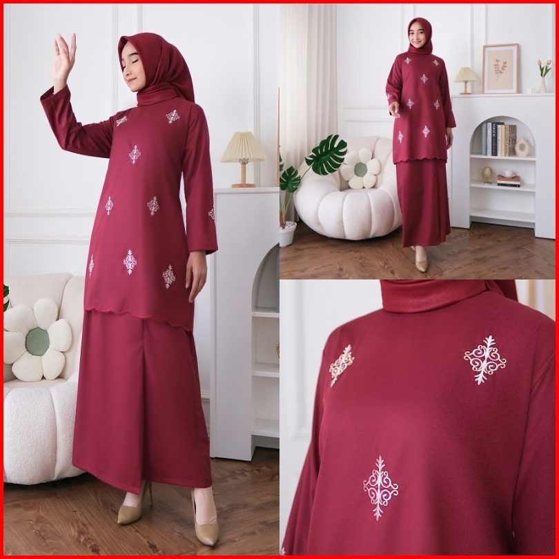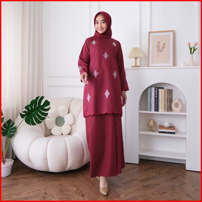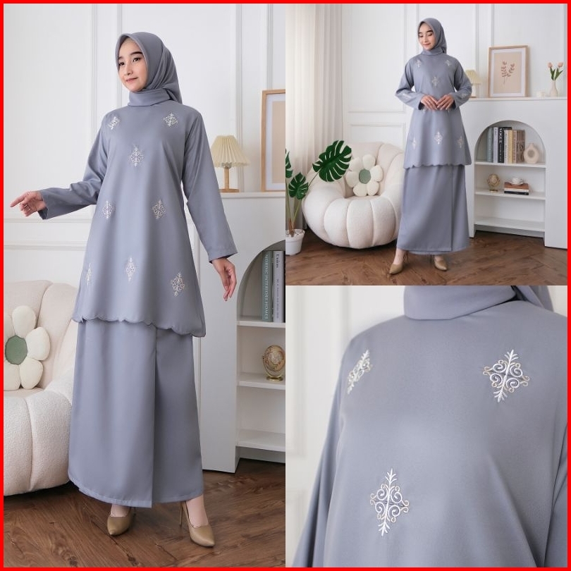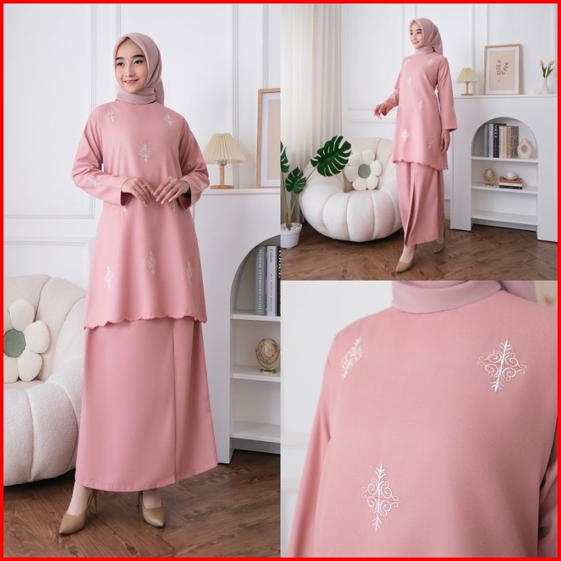 Elvrist - One Set Melissa Kurung Melayu Katun Toyobo Bordir Tabur Setelan