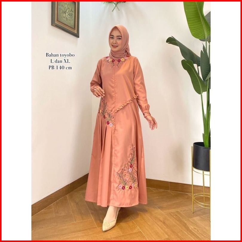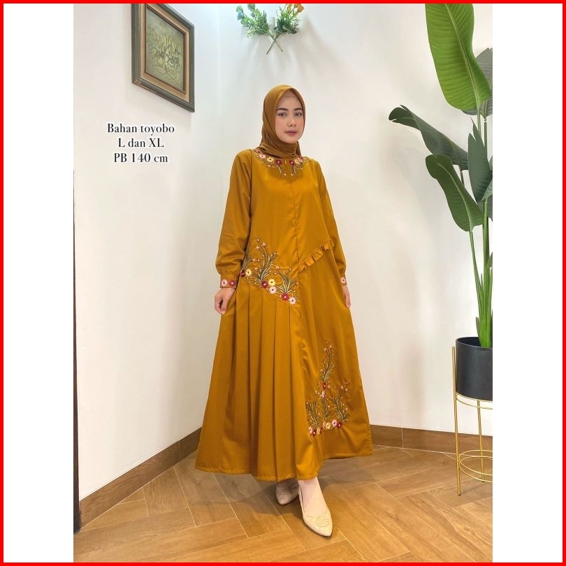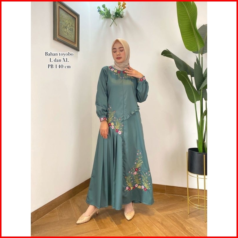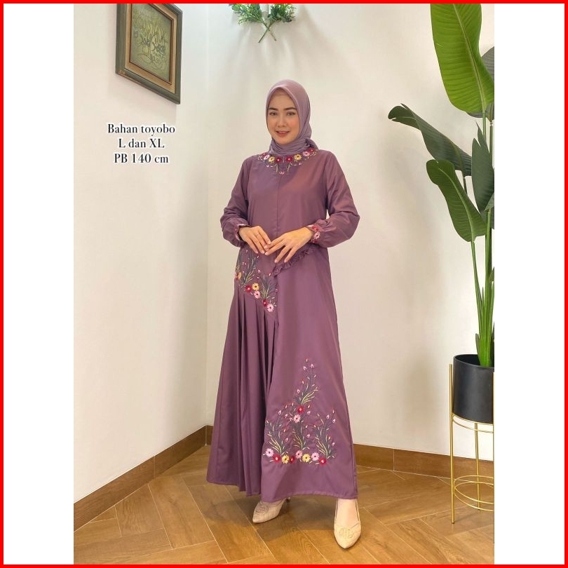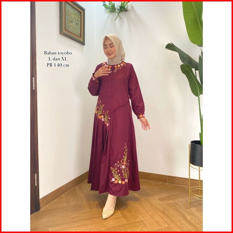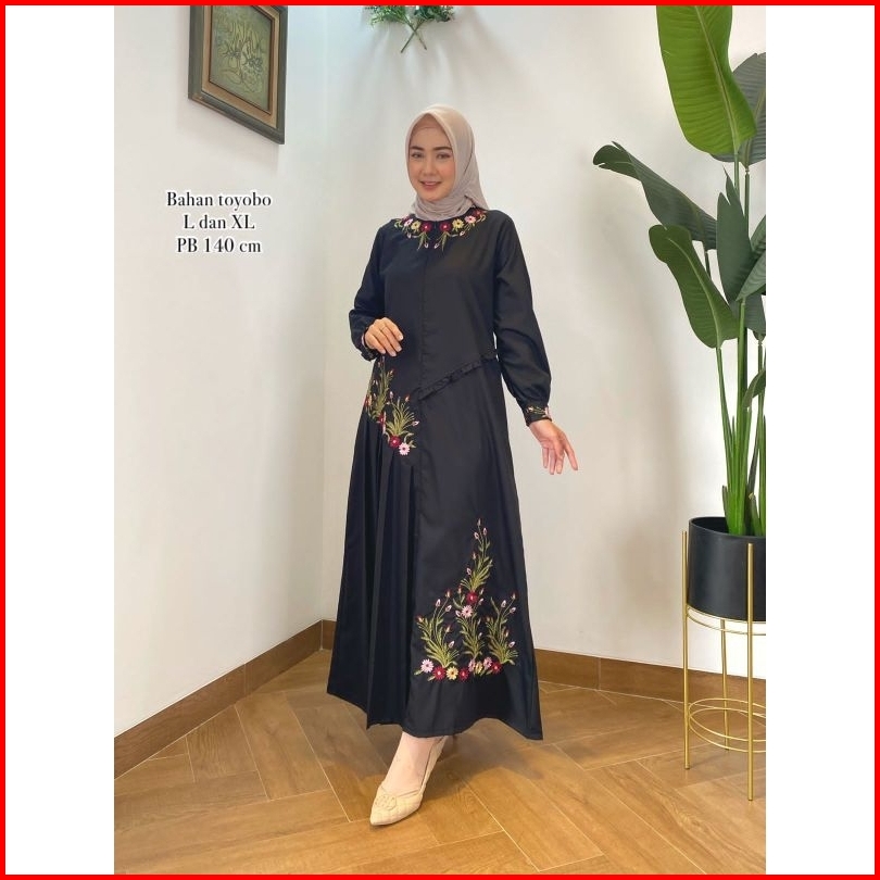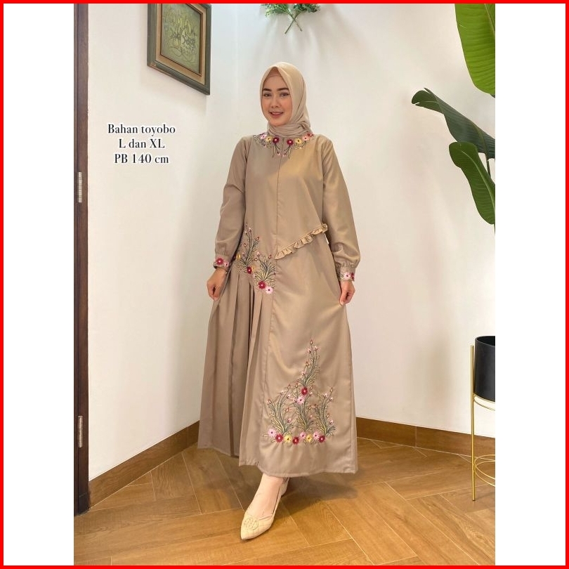 Elvrist - Gamis Katun Toyobo Bordir Rempel Samping Kembang Bunga