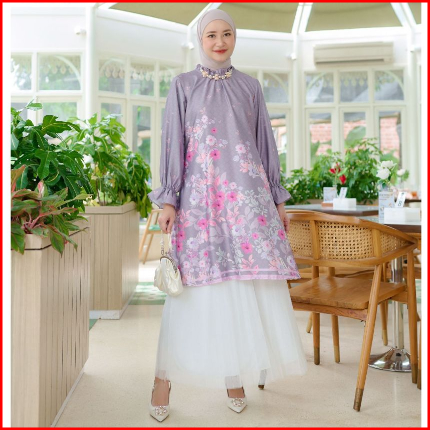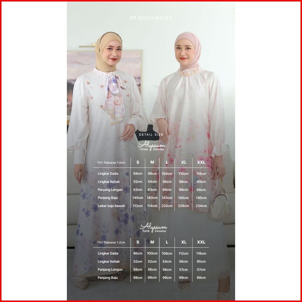 Kheva Mauza Sarimbit Keluarga Raya Gamis Tunik Melayu Wanita Alyssum Series Dress Tunik Tunik Melayu