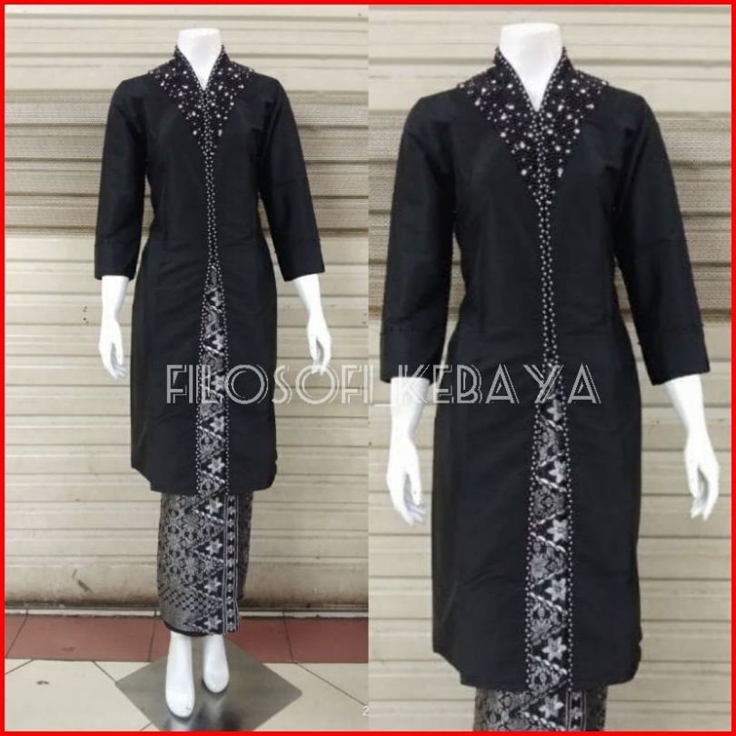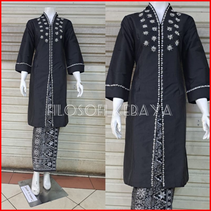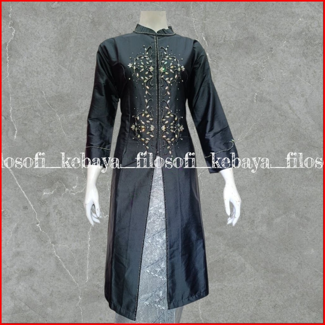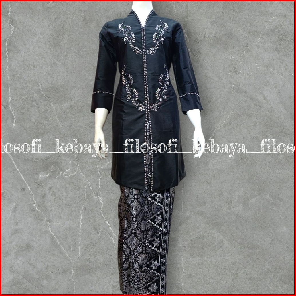 Kebaya Kurung Taffeta Hitam - Kebaya Kurung Melayu - Kebaya Taffeta Full Payet - Kebaya Kurung Taffeta Malaysia