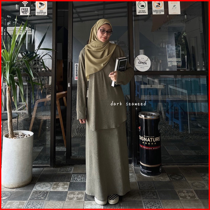 Saila Knit Set Malaysian Tunik Dan Rok Hijab Shafiyya Hi.shafiyya