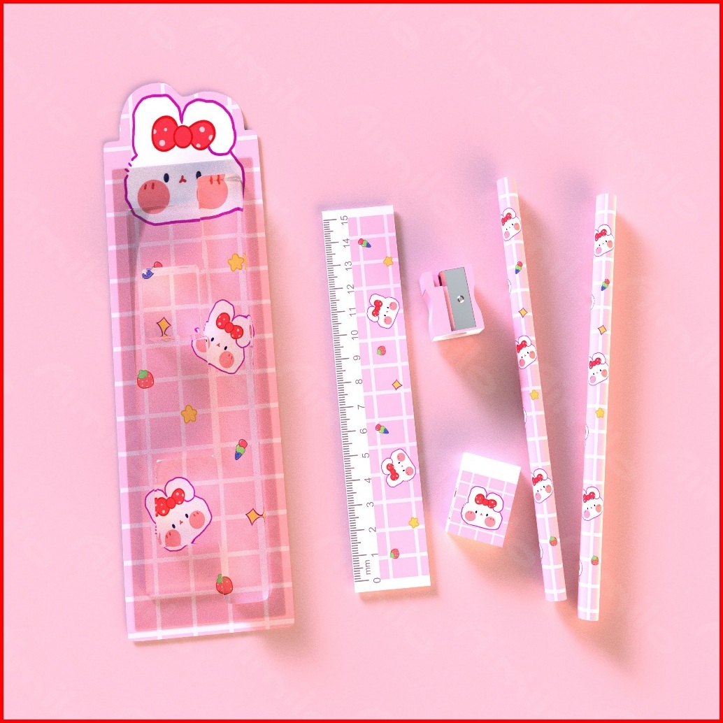Ready Aimilo 5in1 Pensil Set Alat Tulis Anak Lucu Dan Penghapus Untuk Tempat Pensil Buku Tulis Sekolah