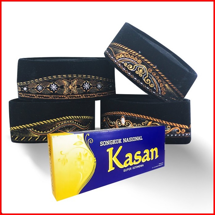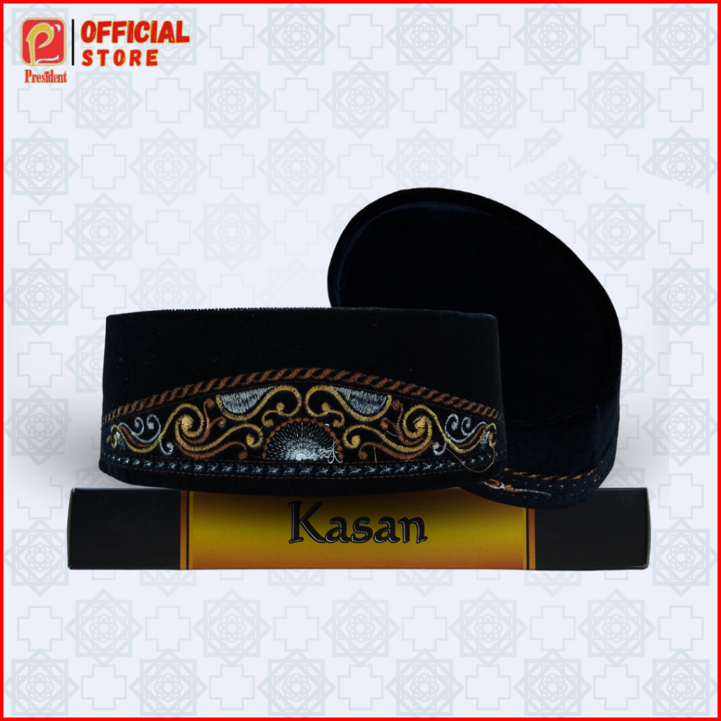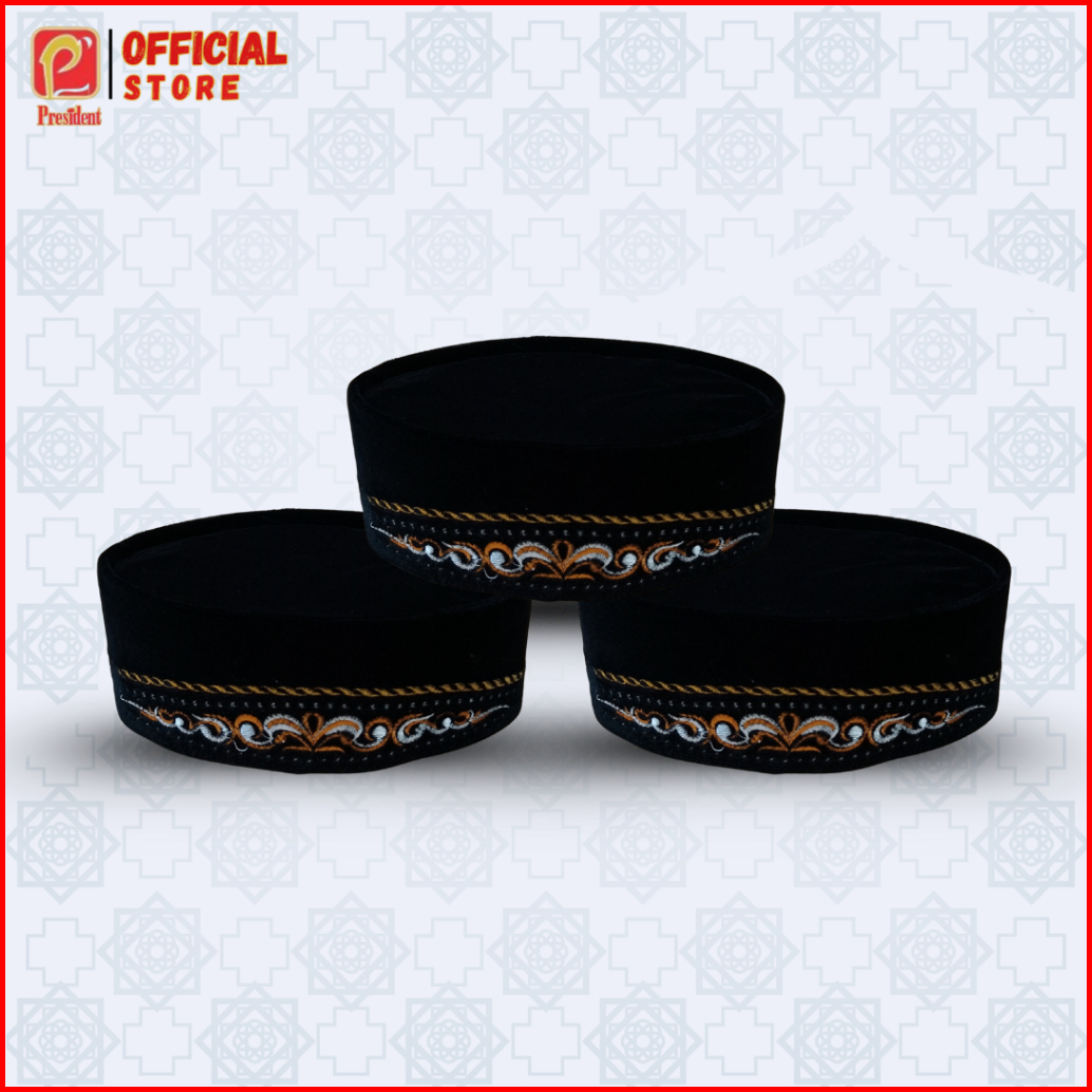 President - Songkok Hitam Peci Hitam Kasan Bordir Kopiah Nasional Motif Bludru Kualitas Premium