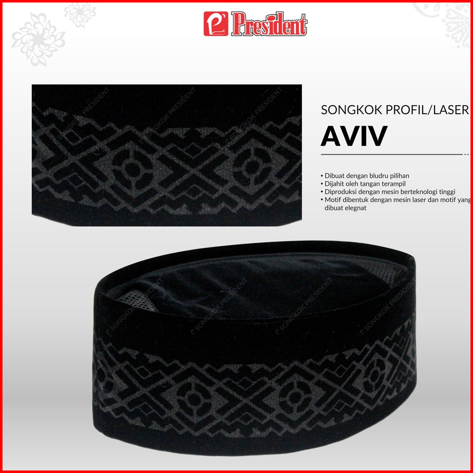 President - Songkok Hitam Peci Hitam Kopiah Hitam Motif Profil Tipe Aviv Profil E Beludru Premium
