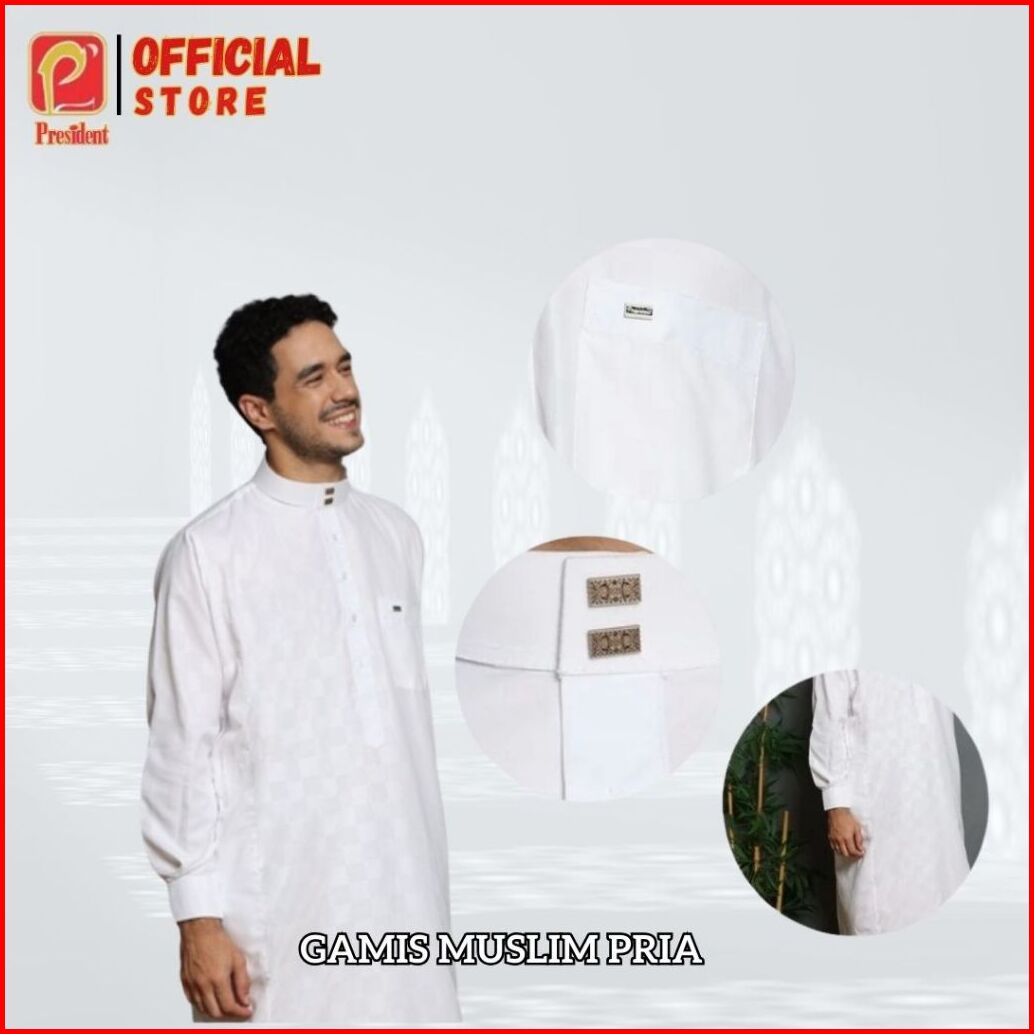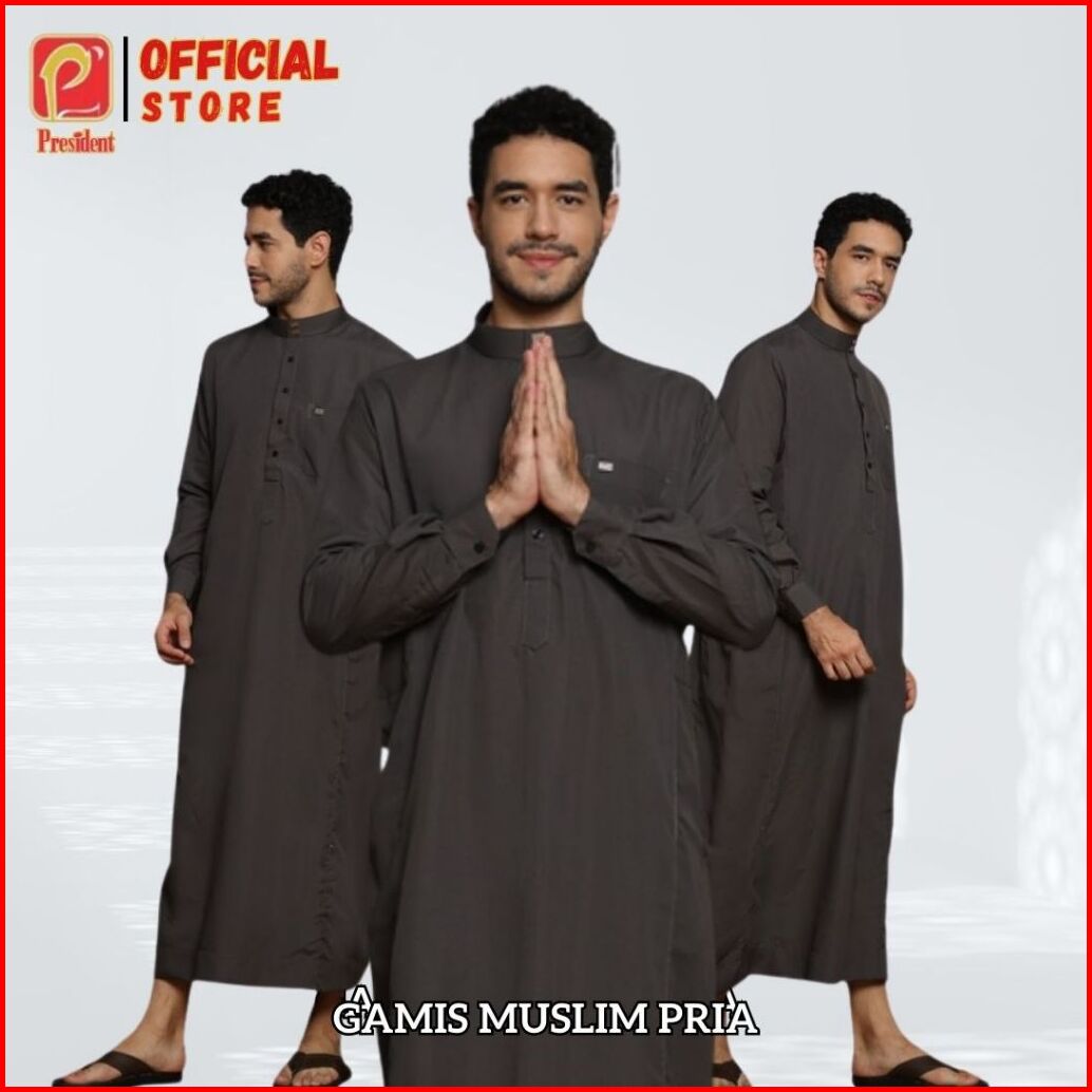 President - Gamis Pria Dewasa Remaja Jubah Laki-laki Lengan Panjang Reguler Slimfit Premium Spun
