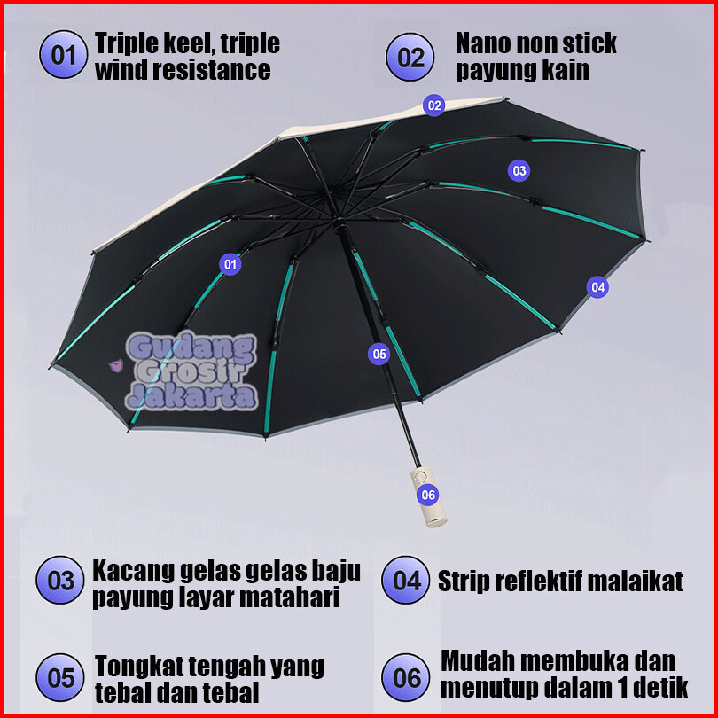 Payung Lipat Otomatis Buka Tutup Buckle Handle Anti Uv 99.97 Bersertifikat Anti Uv Premium Besar Otomatis Payung