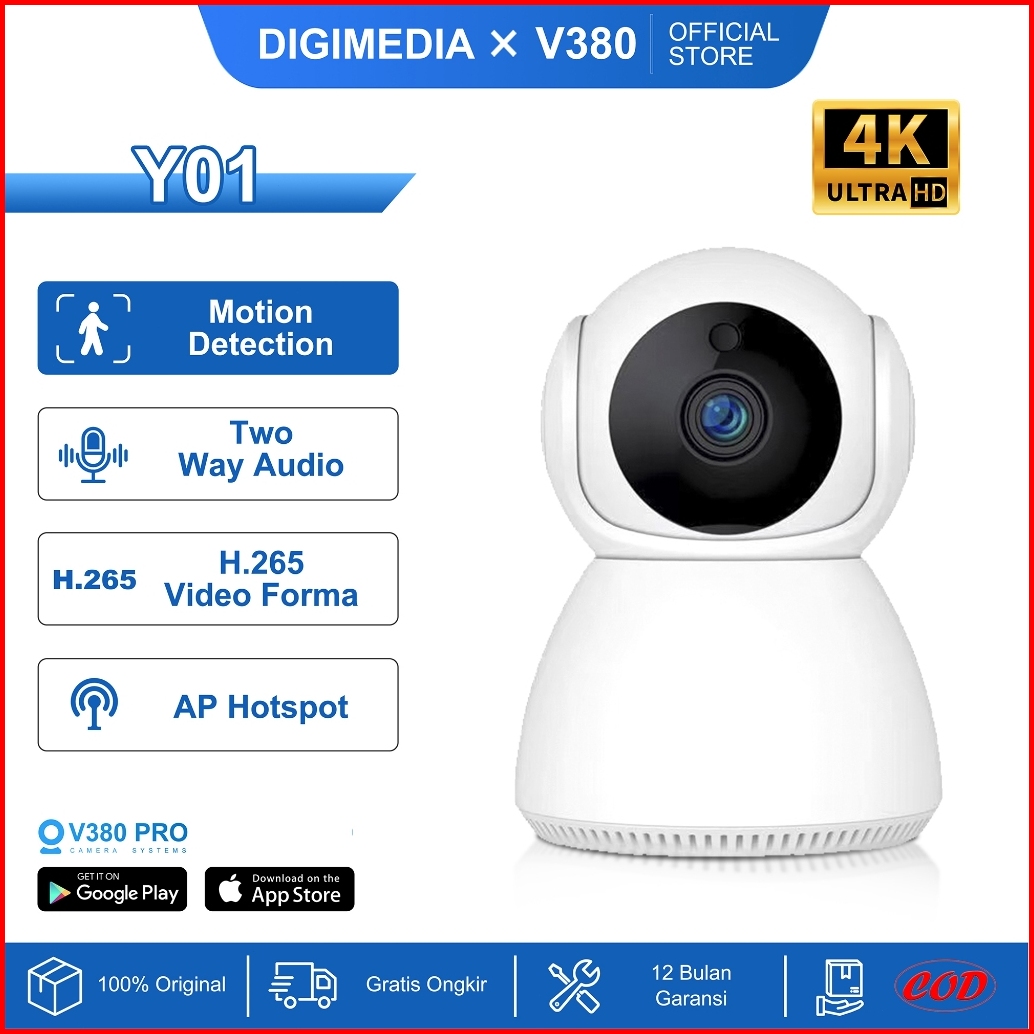 Digimedia Y01 Smart Ip Kamera Cctv Wifi 4mp Indoor V380 Pro Ptz 360 Jarak Jauh Security Camera Pelacakan Otomatis Garans