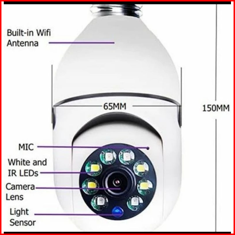 Smart Ip Camera Fittings Lampu E27 V380 Pro Hd1080p Cctv Wifi Wireless