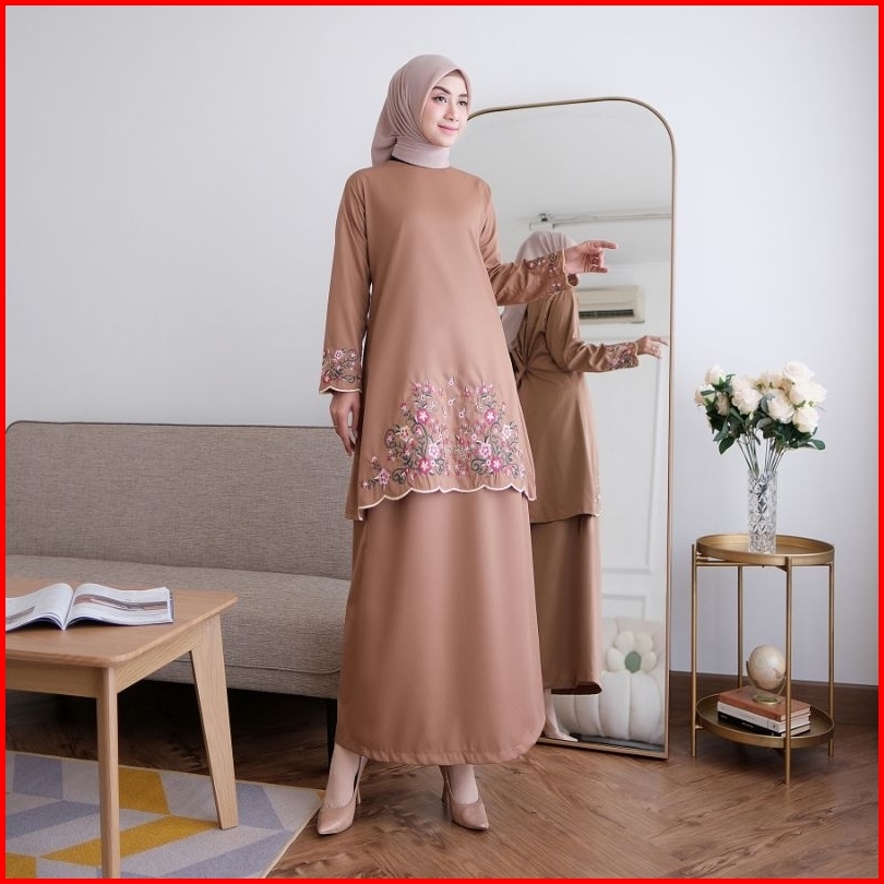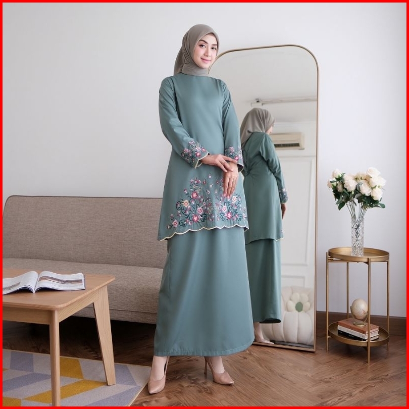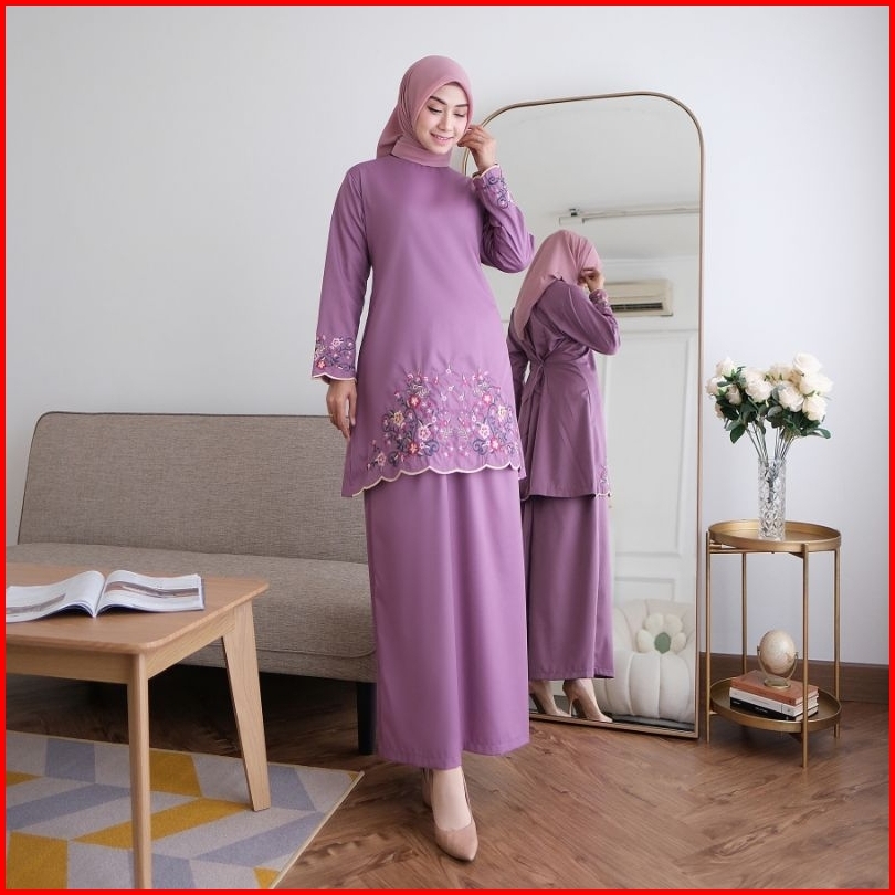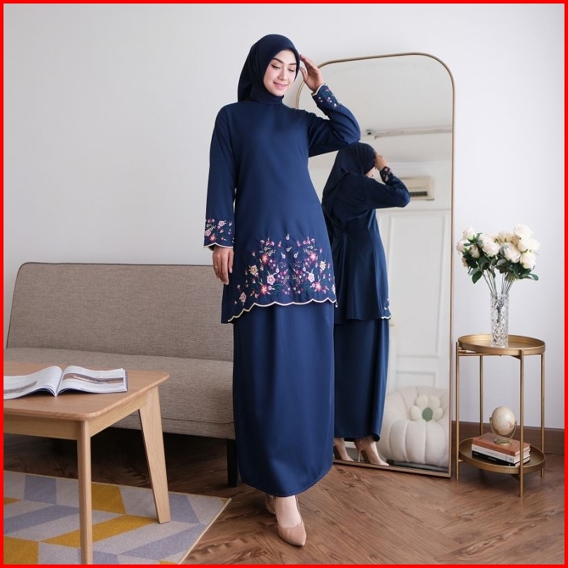 Elvrist-one Set Kinara Kurung Melayu Katun Toyobo Bordir Bunga