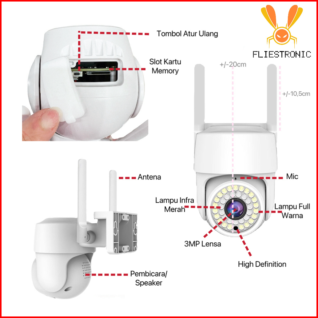 Fliestronic Camera Cctv 3mp 2antena Human Tracking Full Hd Outdoor Indoor Waterproof