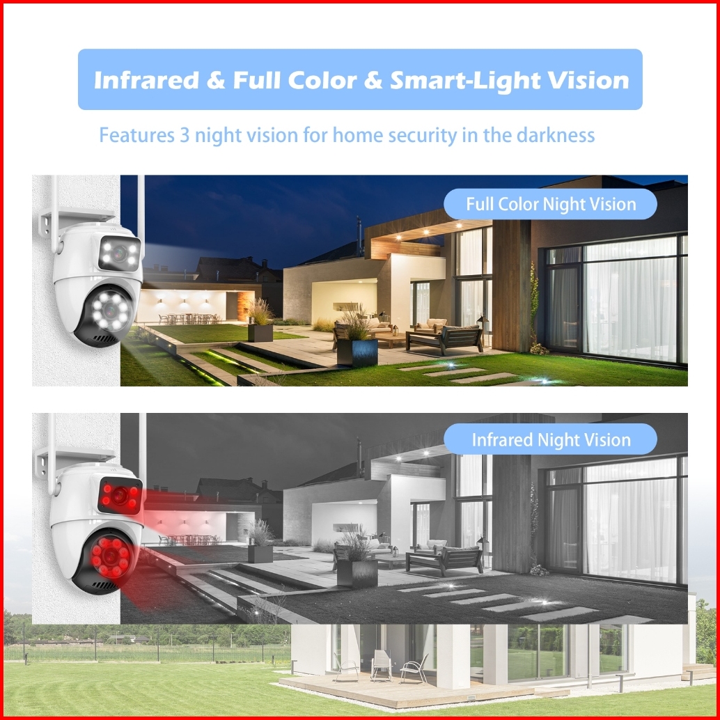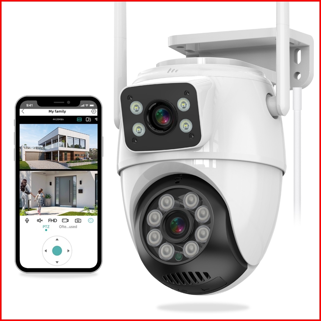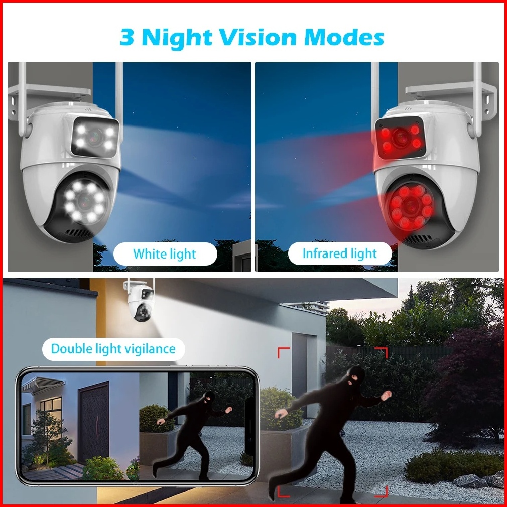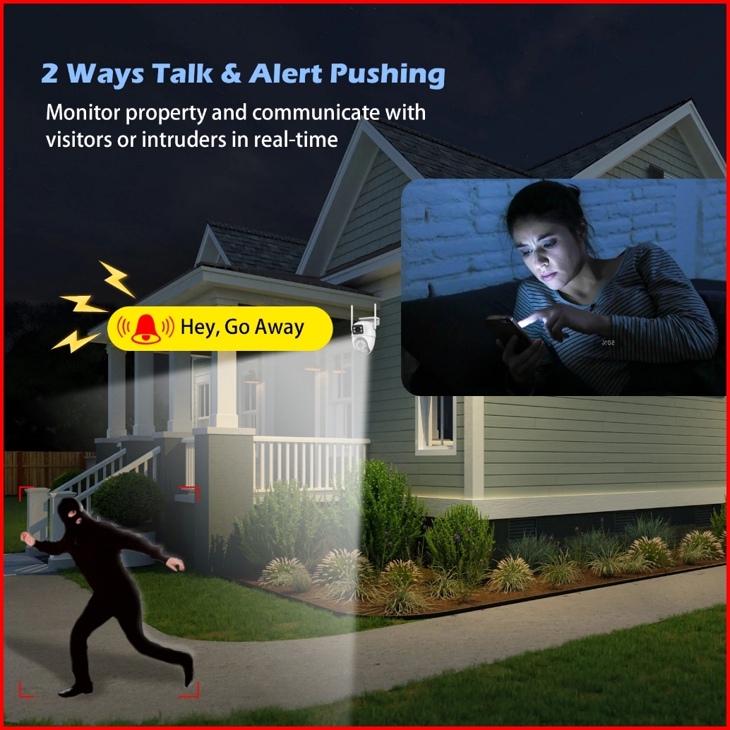 Guoanvision 8mp Kamera Cctv Dual-lens Ai Deteksi Manusia Tanpa Wayar Video Wifi Luar Alarm Otomatis Remote Kendali Ponse