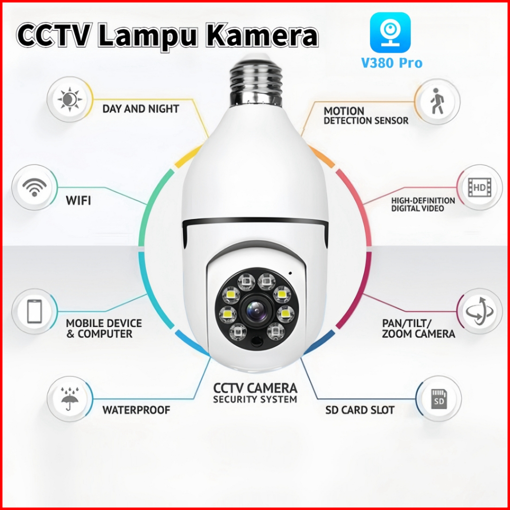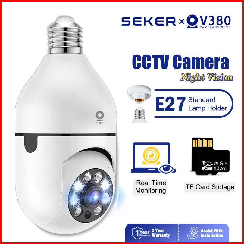 Seker Cctv V380 Pro Smart Wifi Motion Detection Kamer Lampu 360 Degree Ptz View Home Security Ip Camera