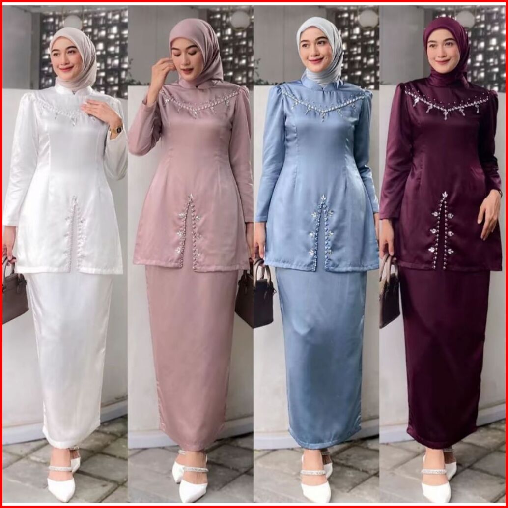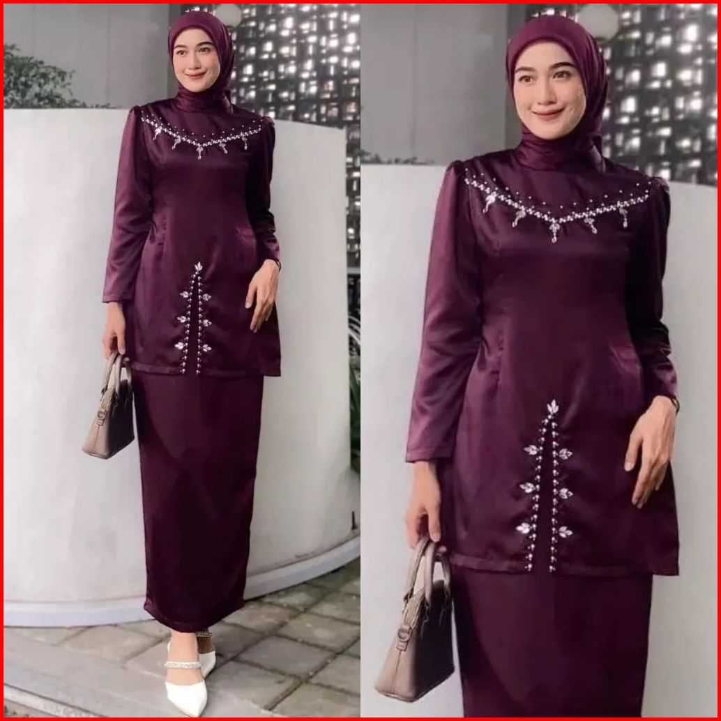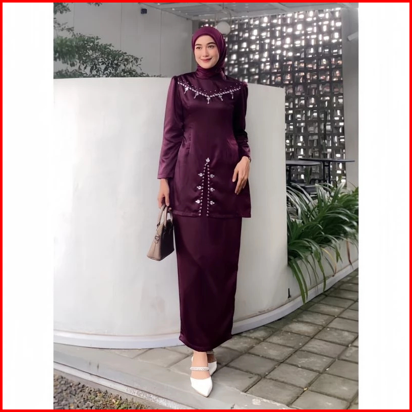 Ada Jumbo Oneset Fayra Baju Kurung Melayu Dress Wanita Special Burgundy Baju Lebaran Kondangan Kekinian Full Payet 2025