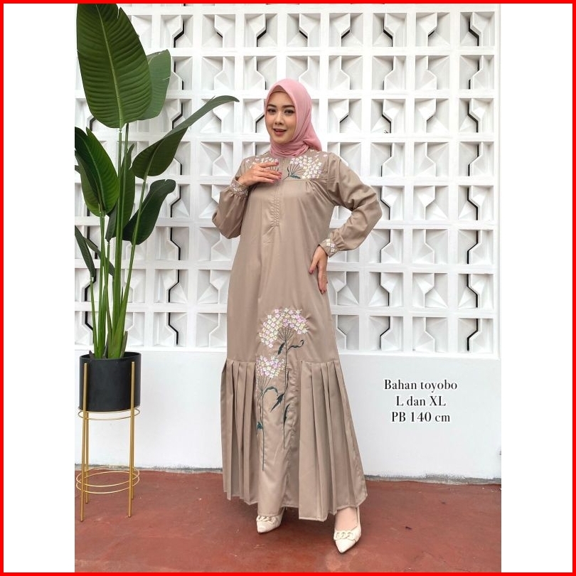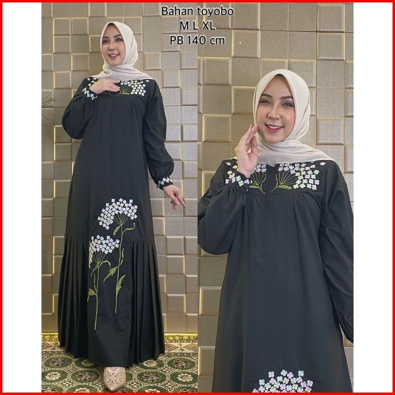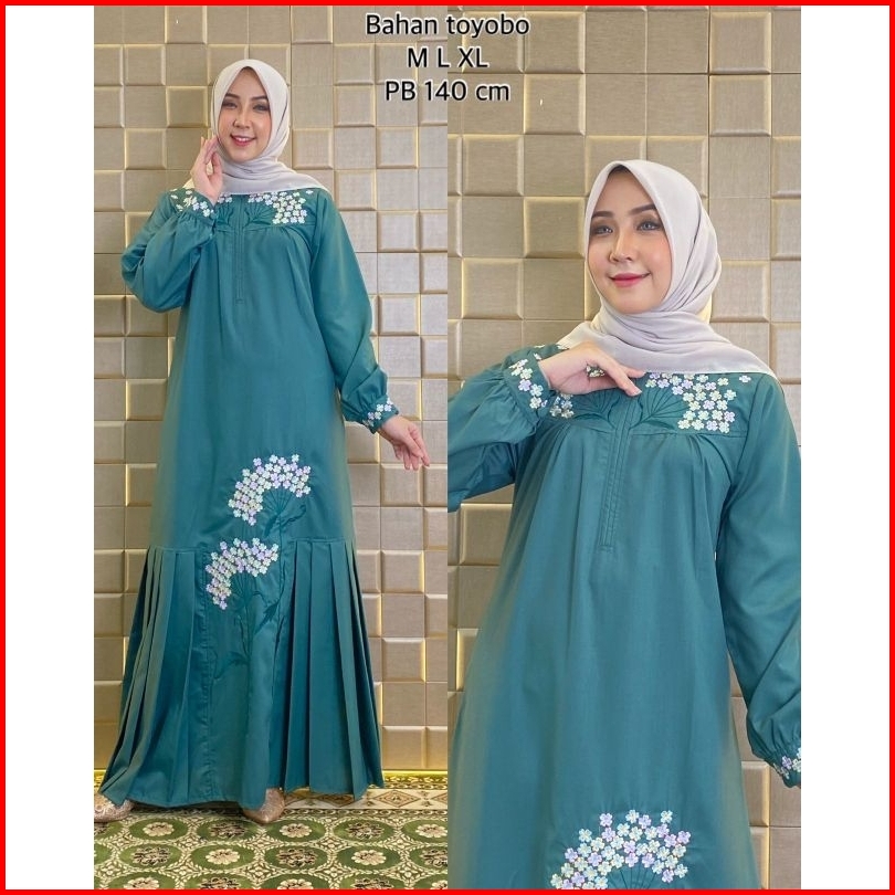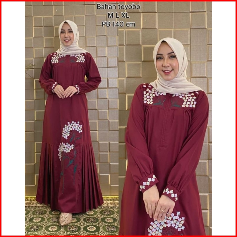 Elvrist - Gamis Katun Toyobo Bordir Motif Kipas