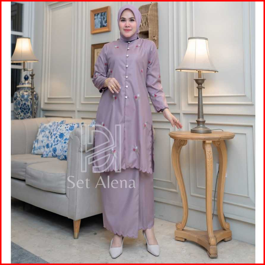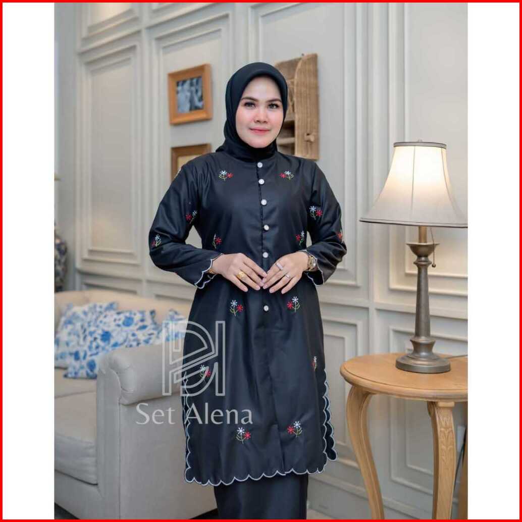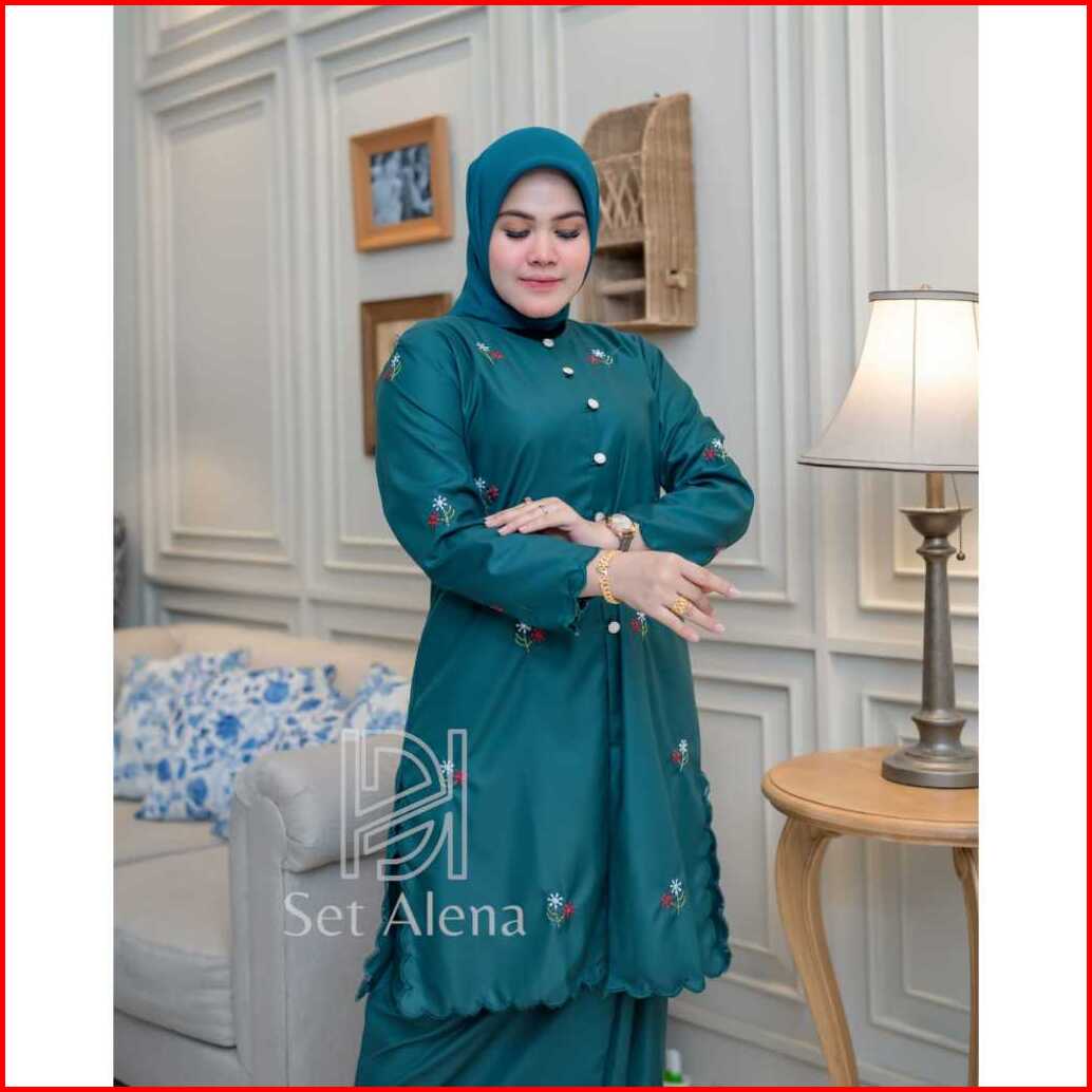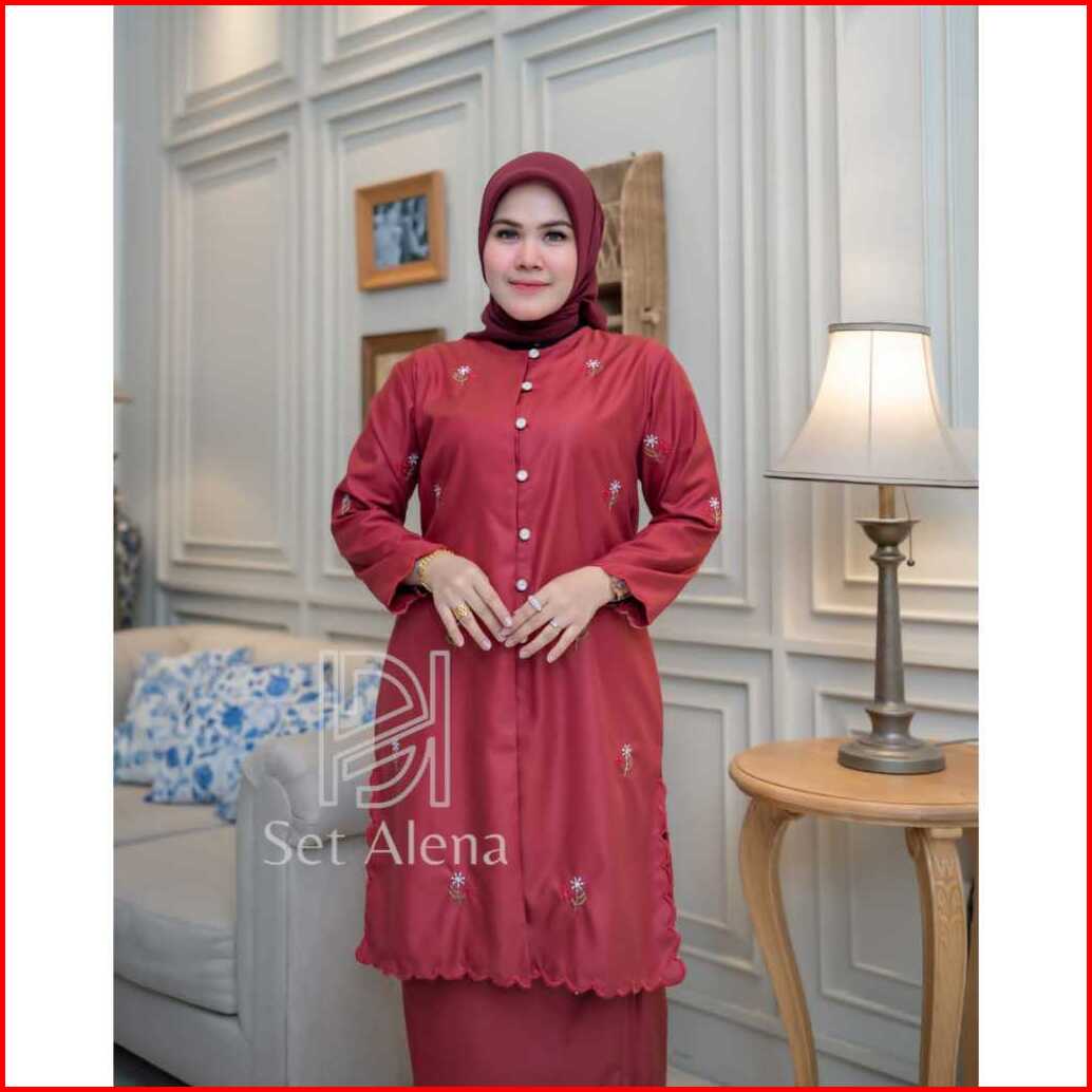 Setelan Melayu Aleena Set Rok Tunik Kurung Bordir Bunga Kurung Melayu Sulam Bunga