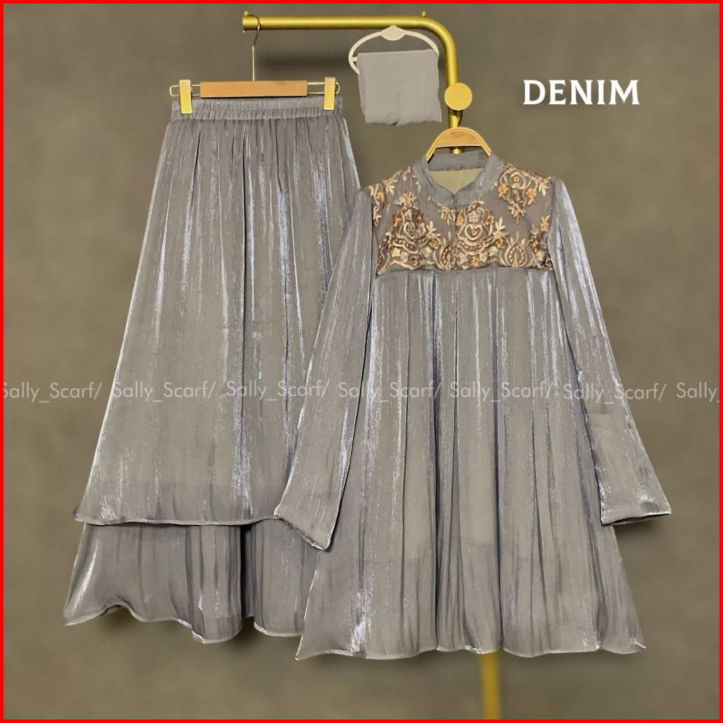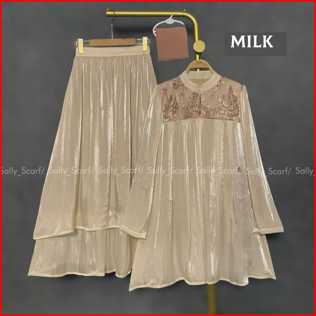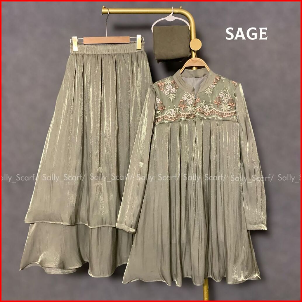 Sally Scarf Set 3 In 1 Odelina Set Rok Kurung Tunik Brukat Lace Baju Melayu Modern Tanpa Hijab