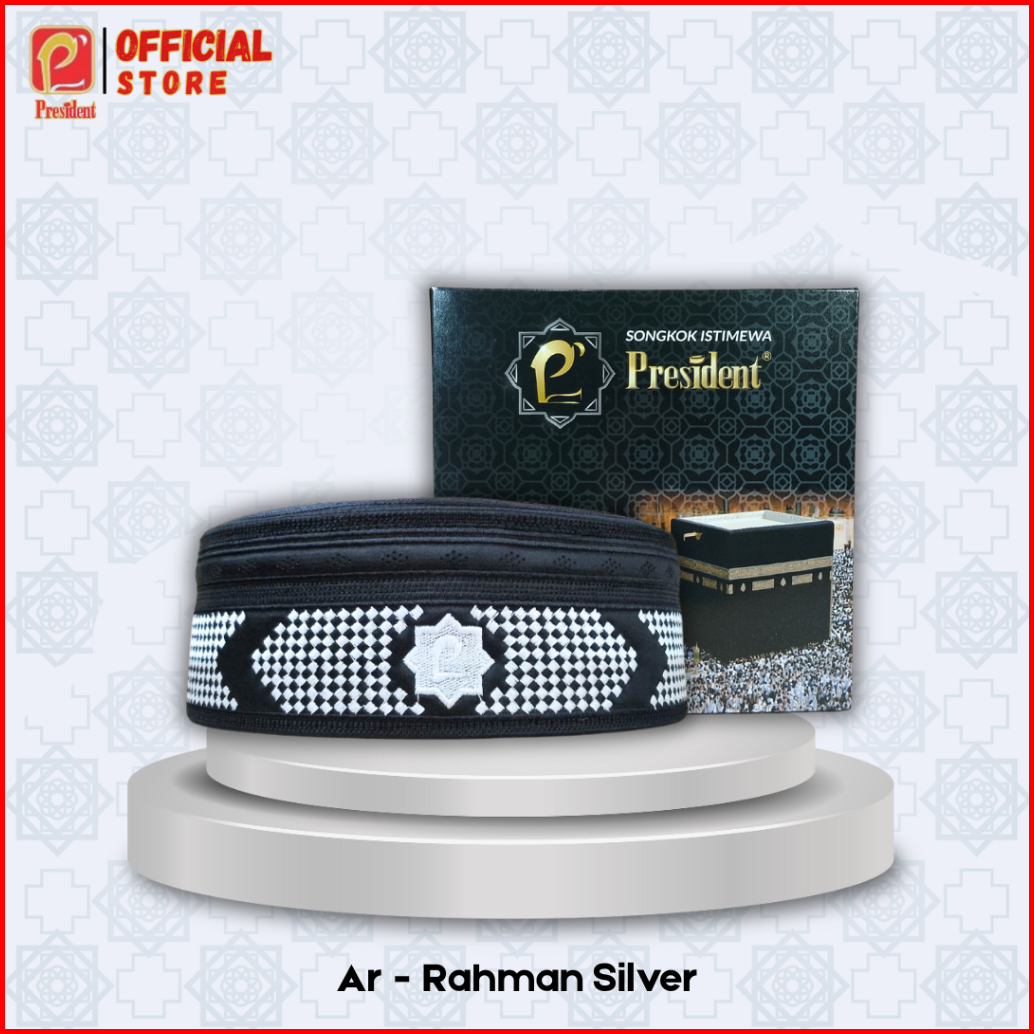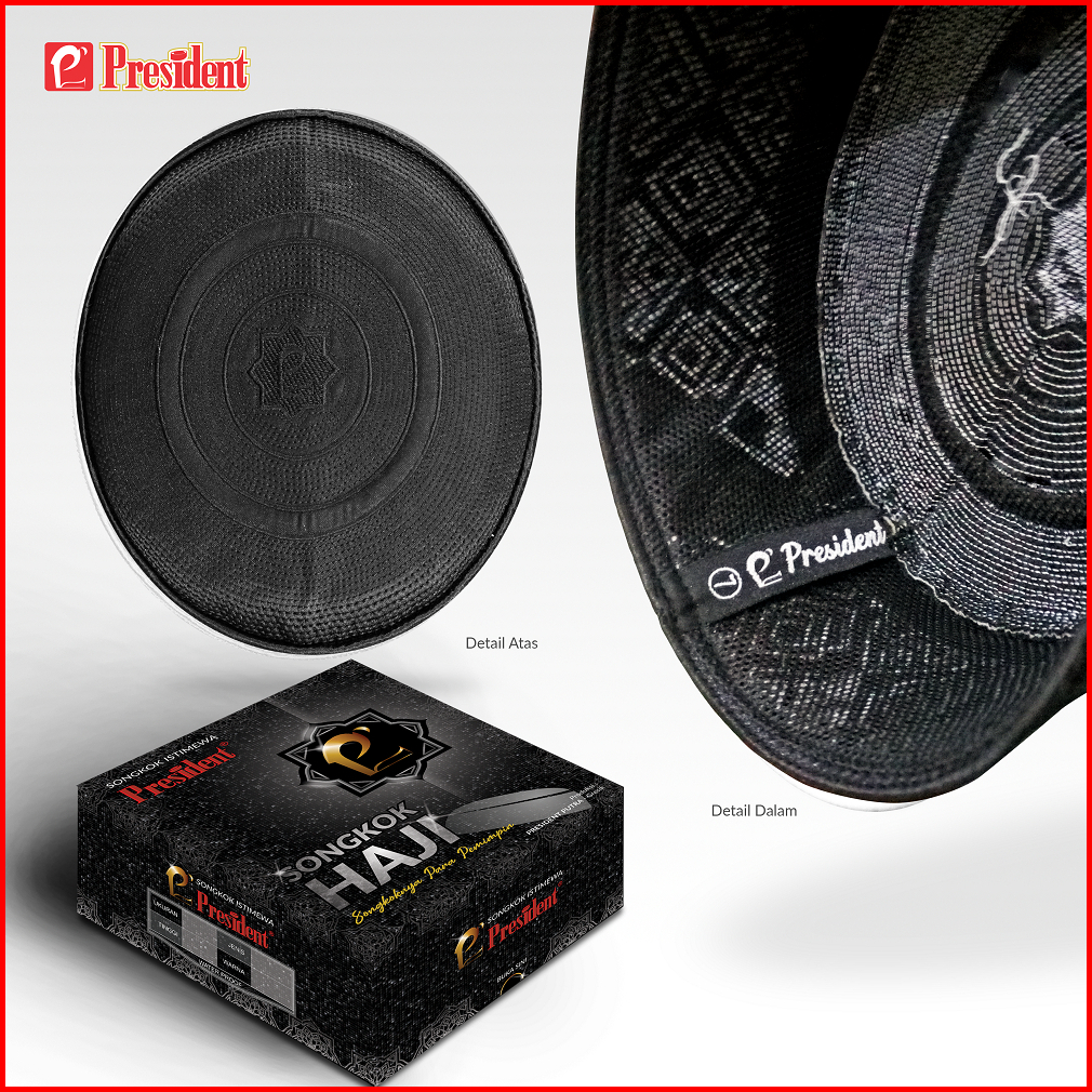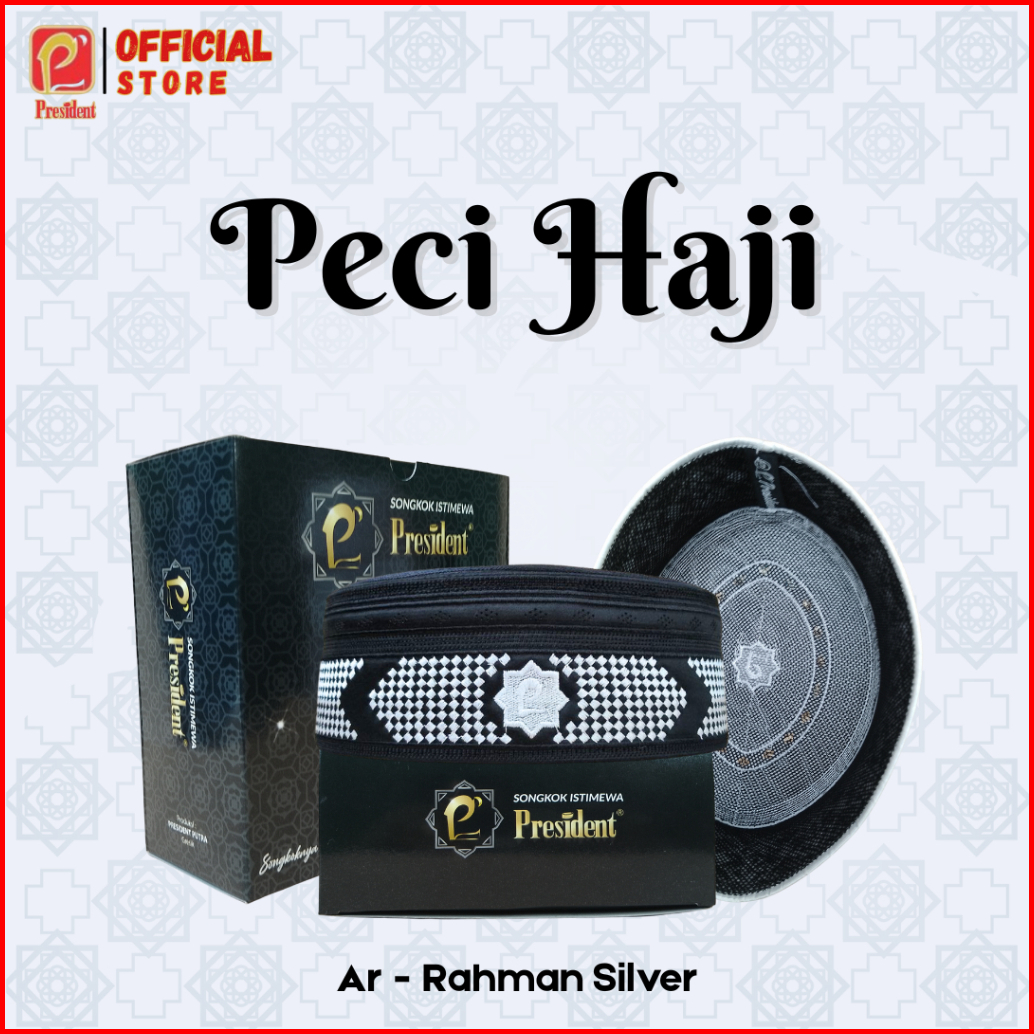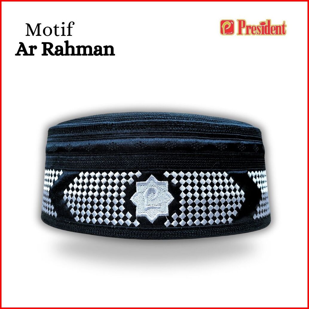 President - Peci Haji Hitam Ar Rahman Kopiah Hitam Songkok Hitam Motif Warna Bordir Kualitas Premium