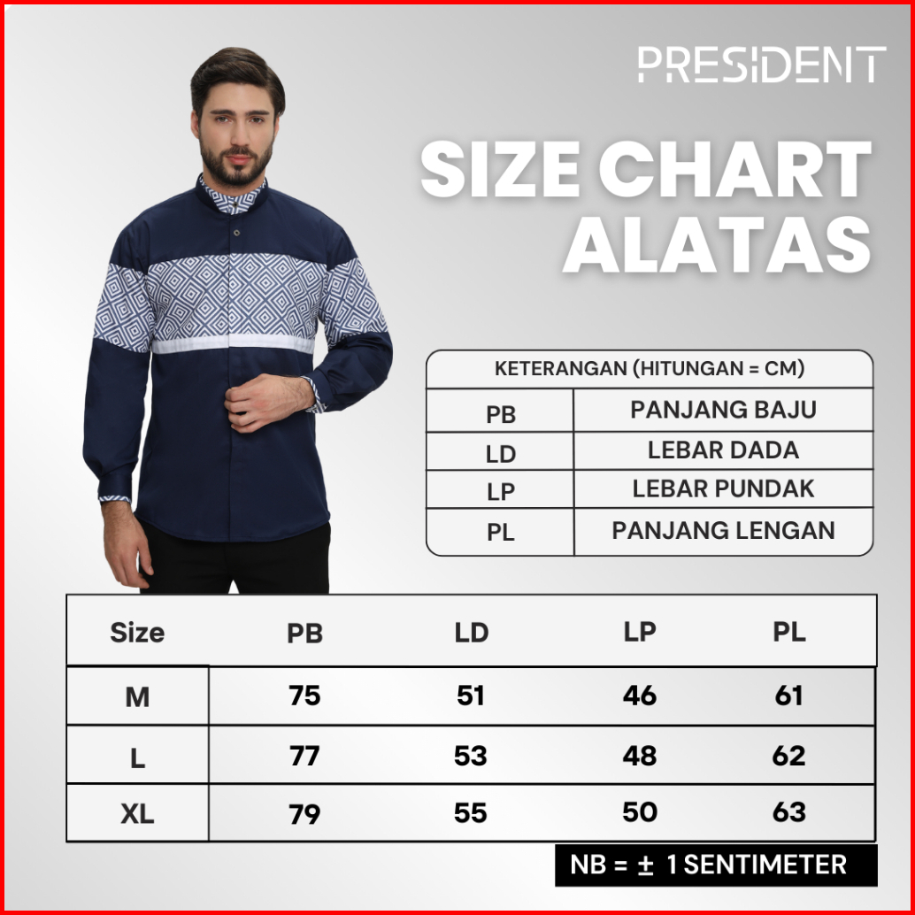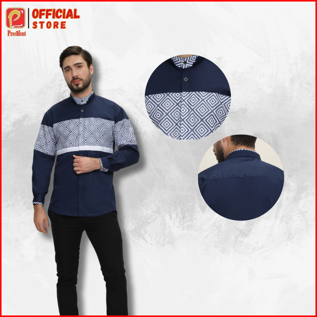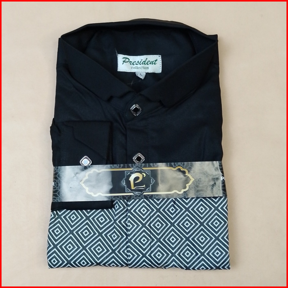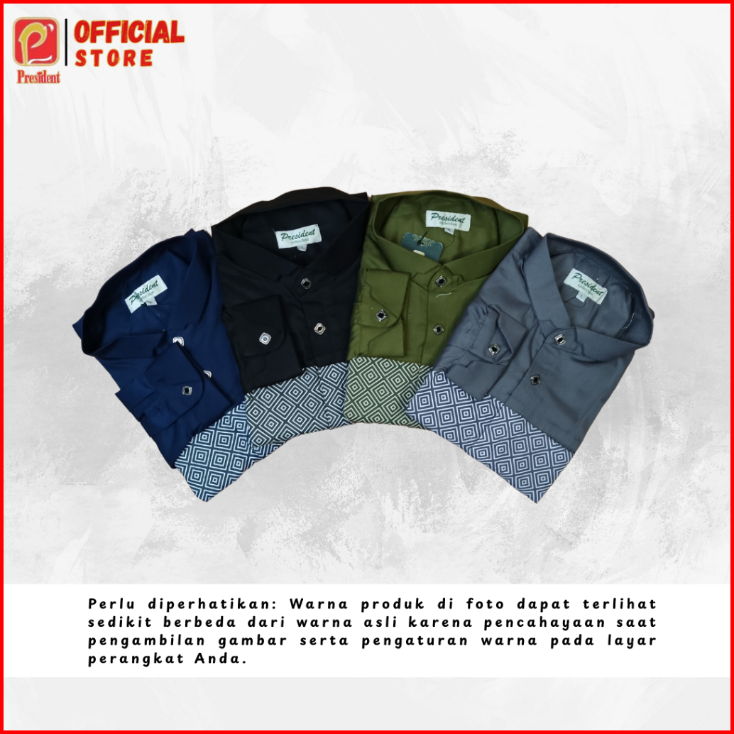 President - Baju Koko Katun Classic Lengan Panjang Manset Remaja Dan Dewasa Kemko Embos Alatas