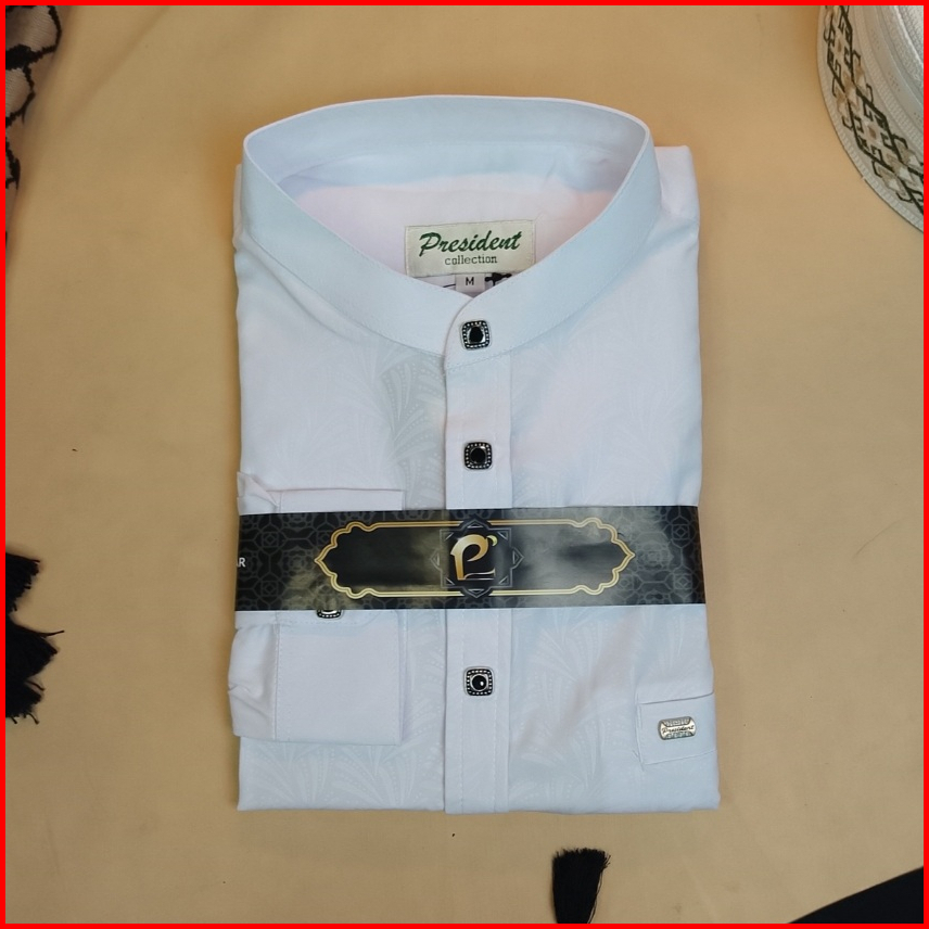 President - Baju Koko Katun Classic Lengan Panjang Manset Remaja Dan Dewasa Kemko Embos Bin Yahya