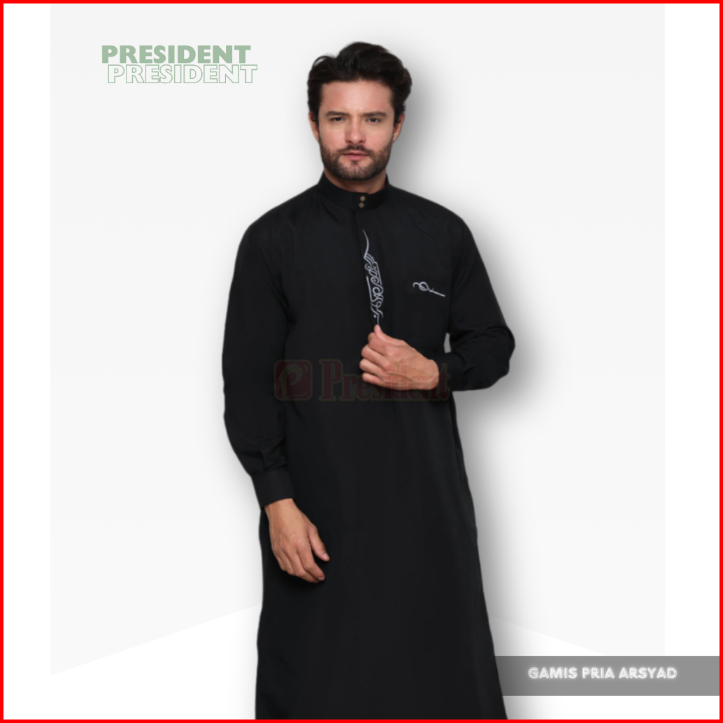 President - Gamis Pria Dewasa Remaja Jubah Laki-laki Lengan Panjang Reguler Slimfit Premium Arsyad