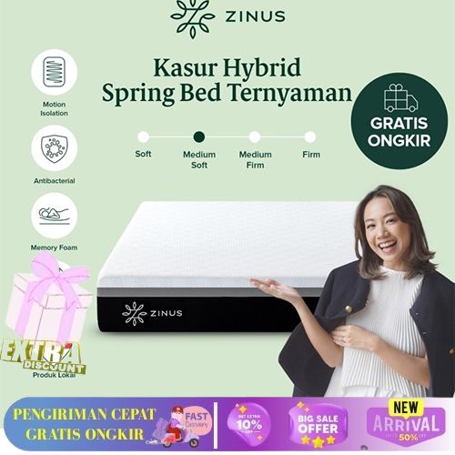 MURAH KASUR SPRING BED HYBRID ZINUS MEMORY FOAM MOTION ISOLATION IN A BOX - KETEBALAN 25CM, 180X200