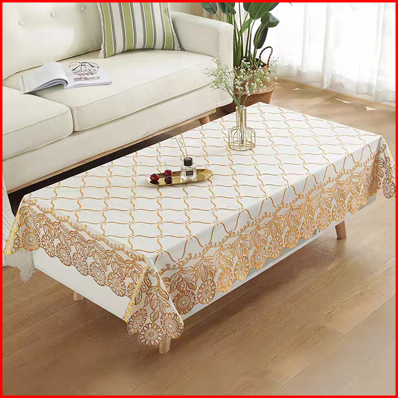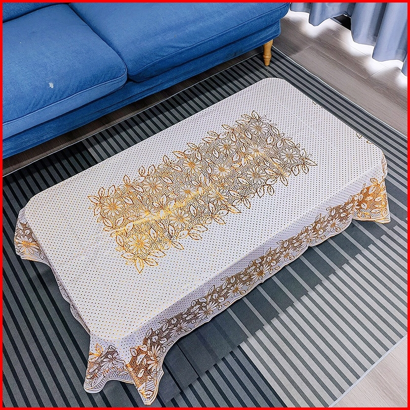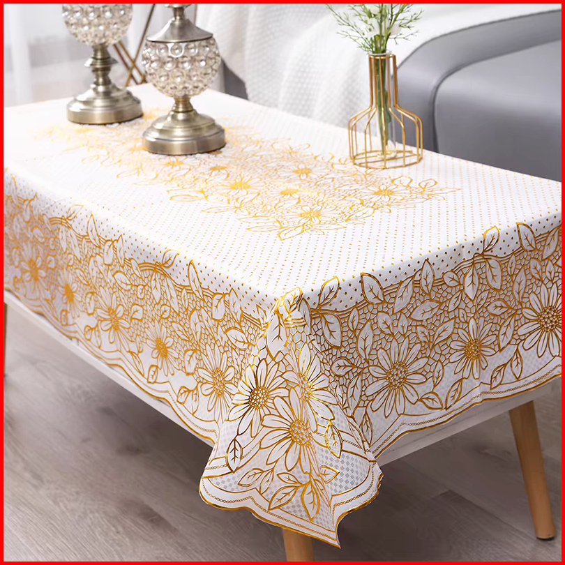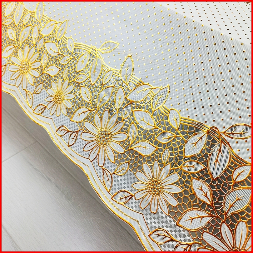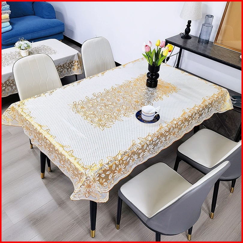Loyal Bosque Taplak Meja Makan Motif Bunga Golden Ukuran 110x160cm Bahan Pvc Tebal Anti Air Minyak Mewah Elegan Perlengk
