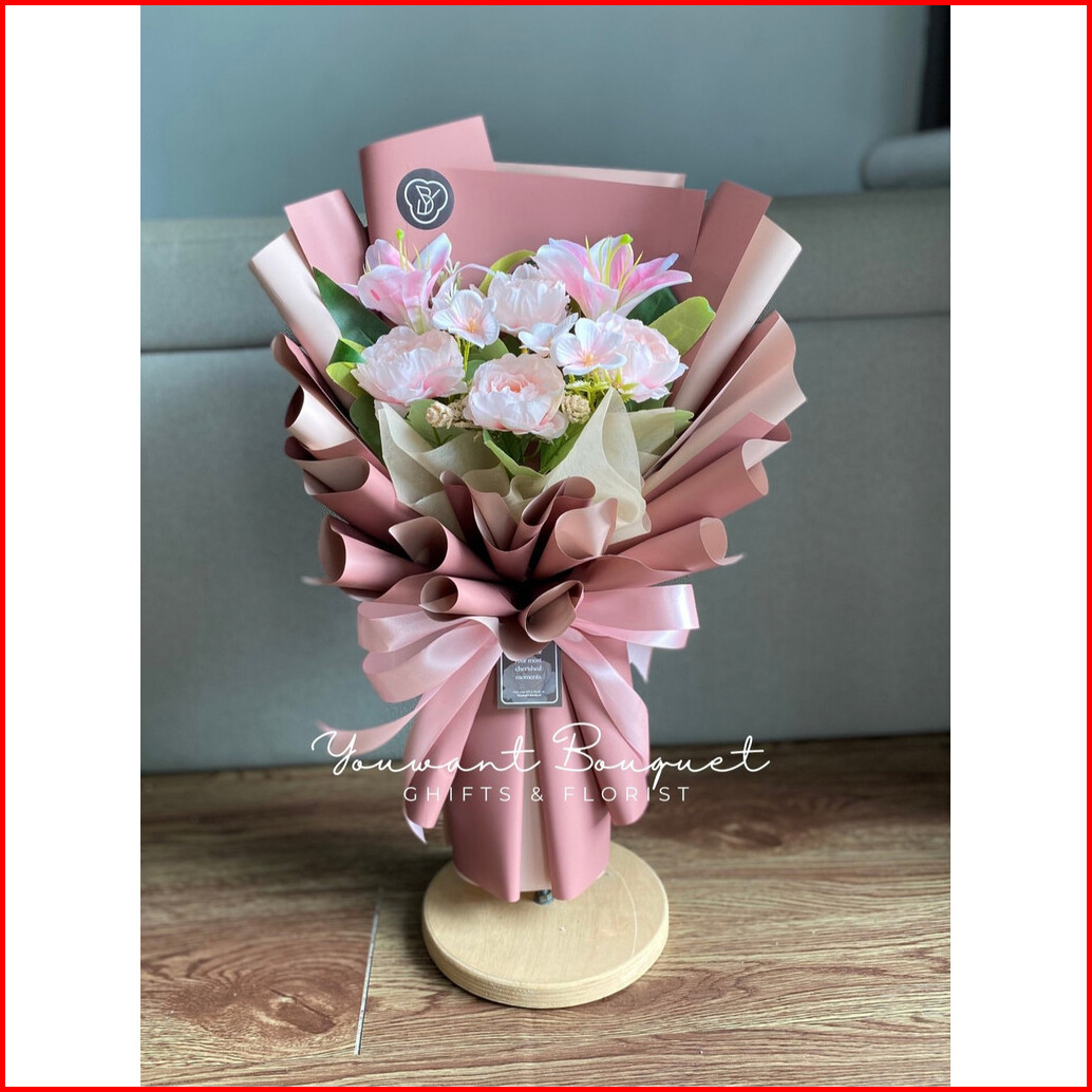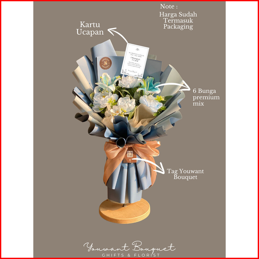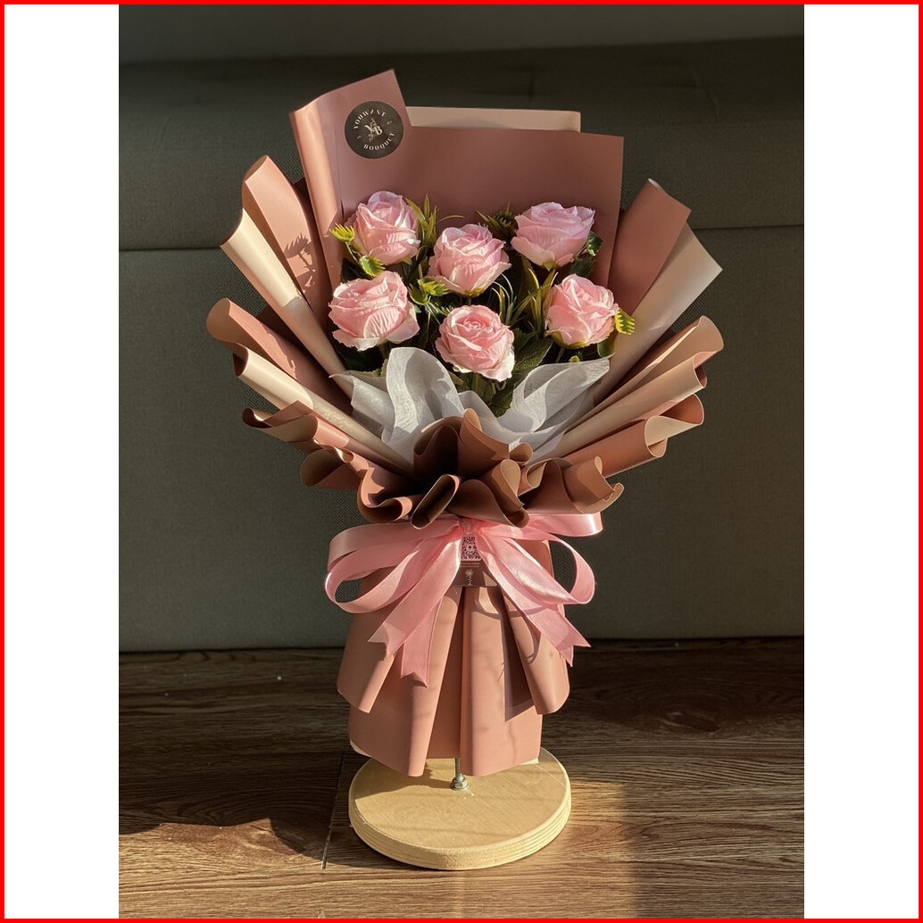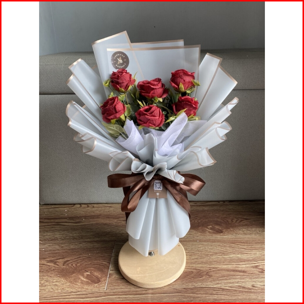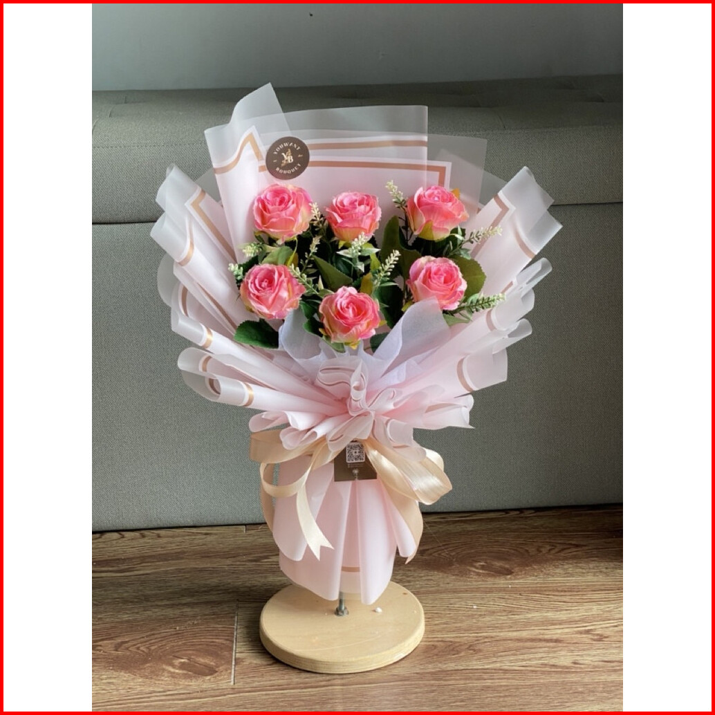 Buket Bunga Premium Mix Rose Artificial 6 Tangkai Free Ucapan Dan Paking Buket Ucapan