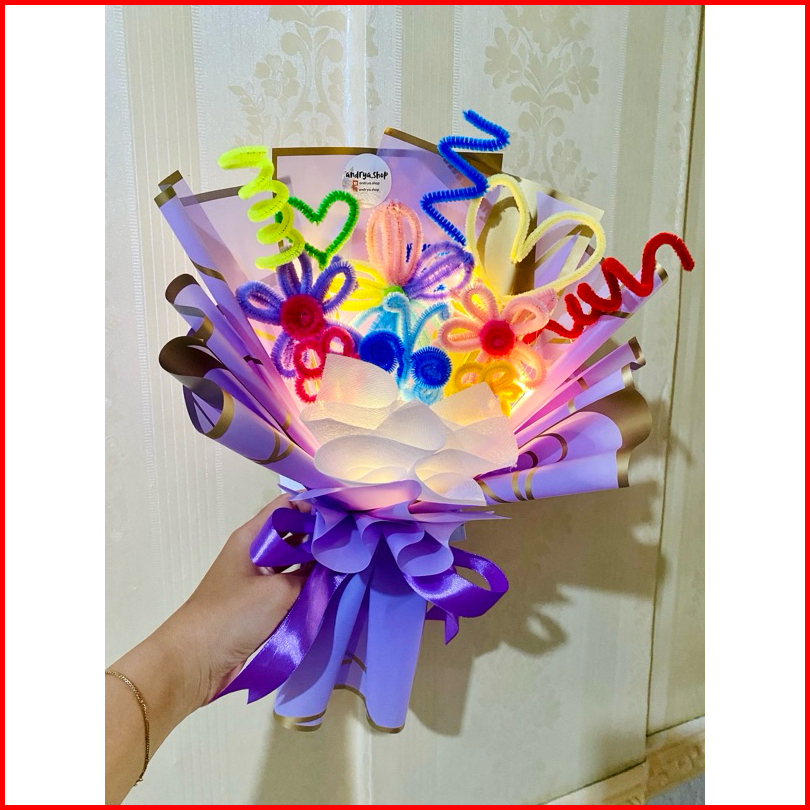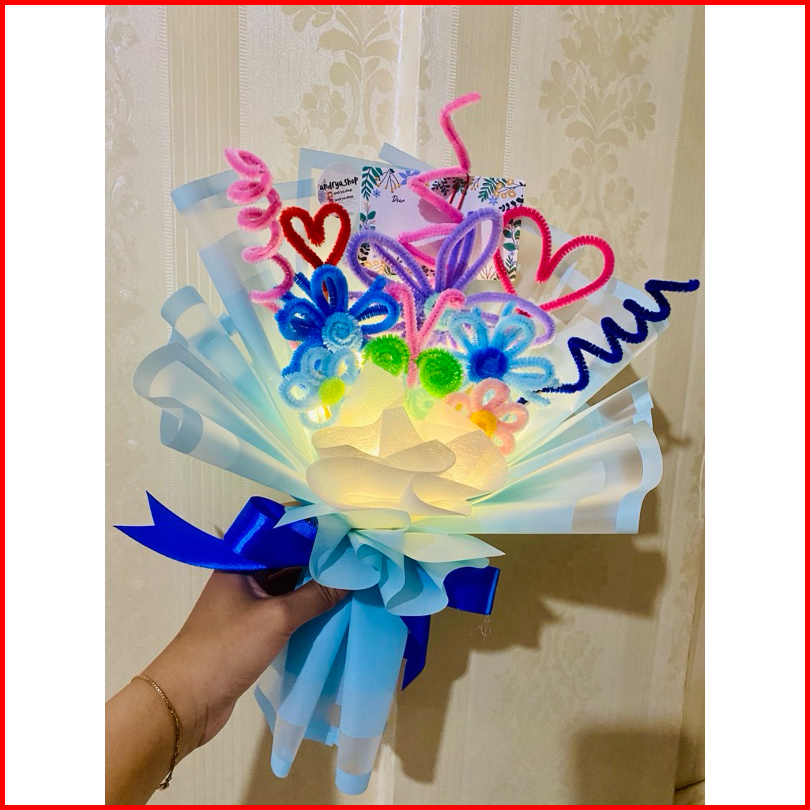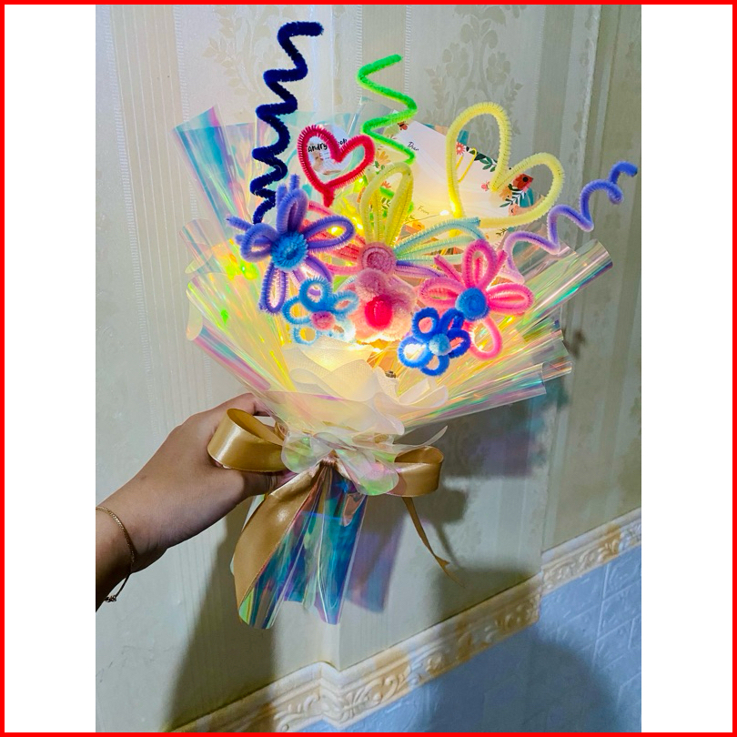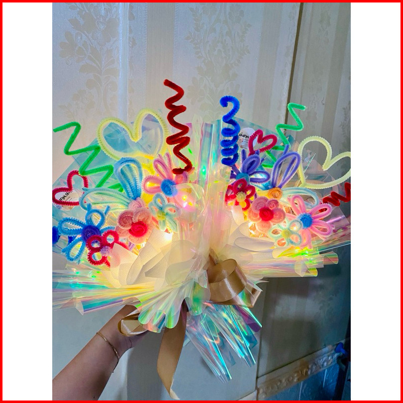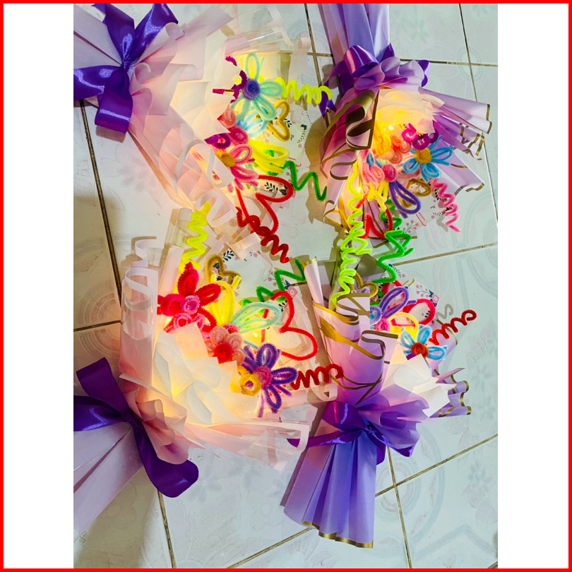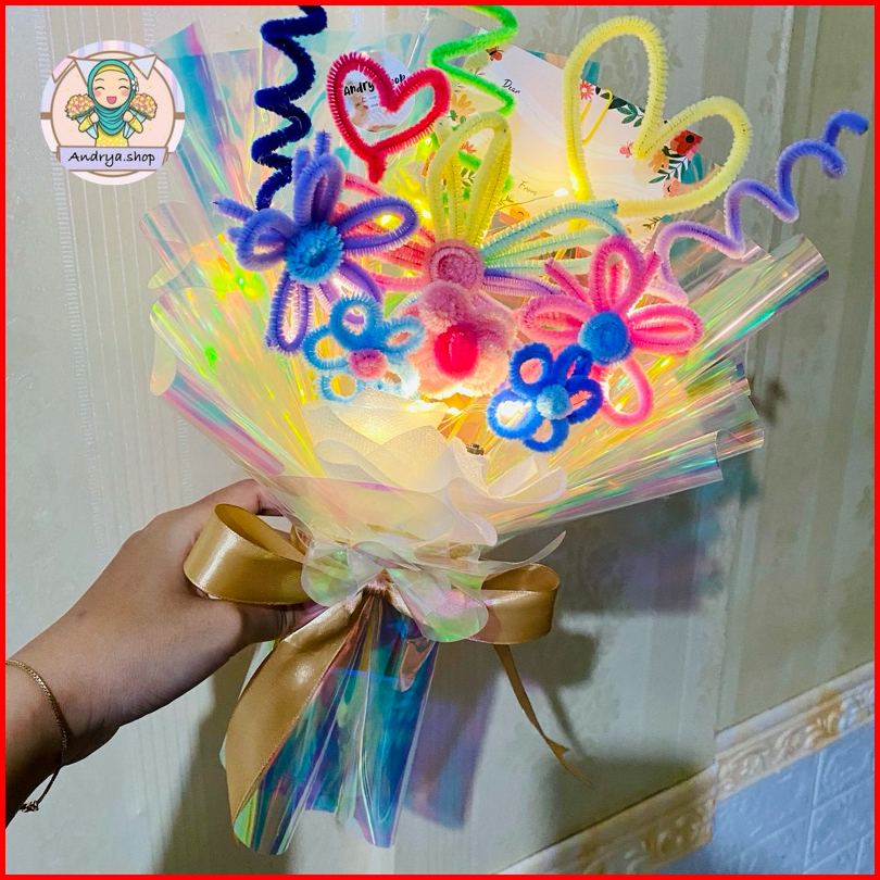 Buket Bunga Kawat Bulu Led Cellophane 30cm