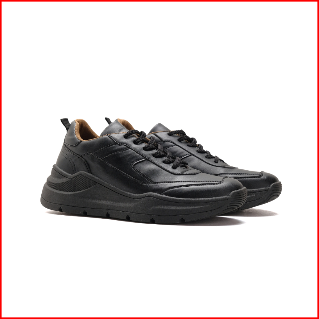 Otiv Vilinus Black - Sepatu Sneakers Kulit Casual Pria Kuliah Kerja Traveling Riding