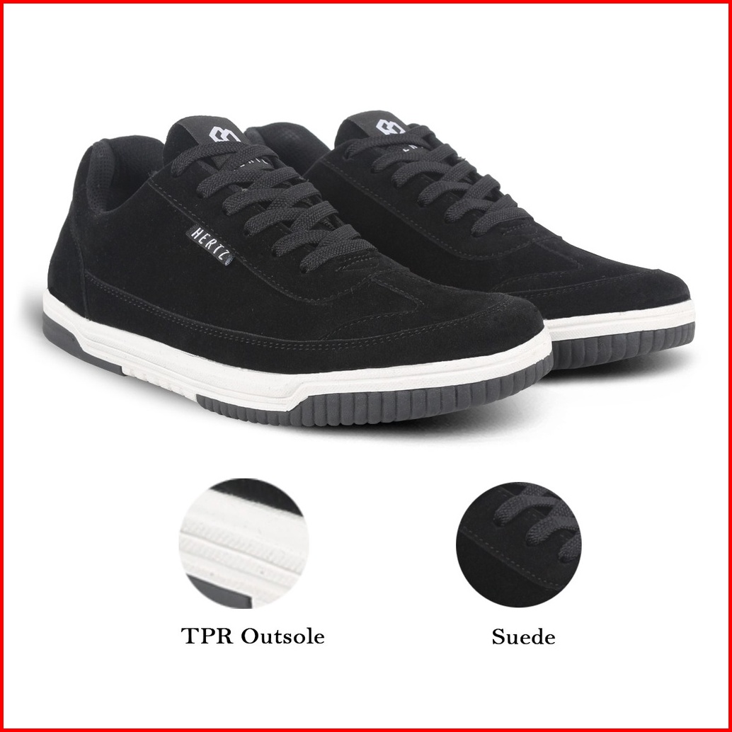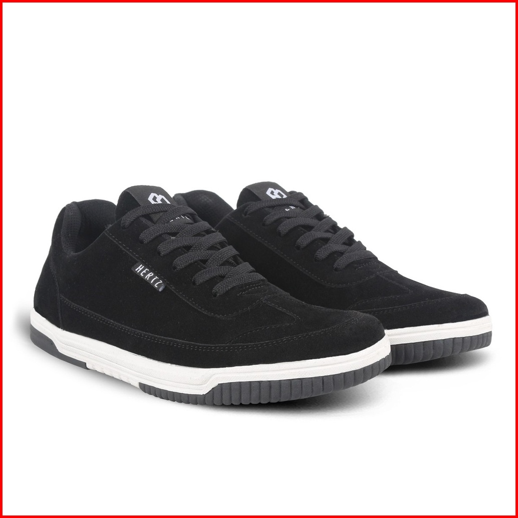 Sepatu Sneakers Pria Terbaru H 3513 Brand Hertz Sepatu Kets Kuliah Olahraga Jalan Jalan Murah Berkualitas Warna Hitam