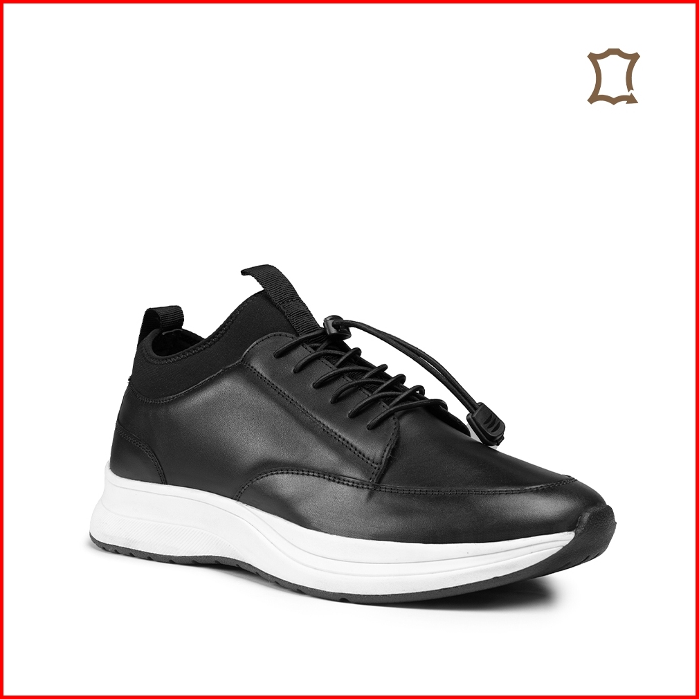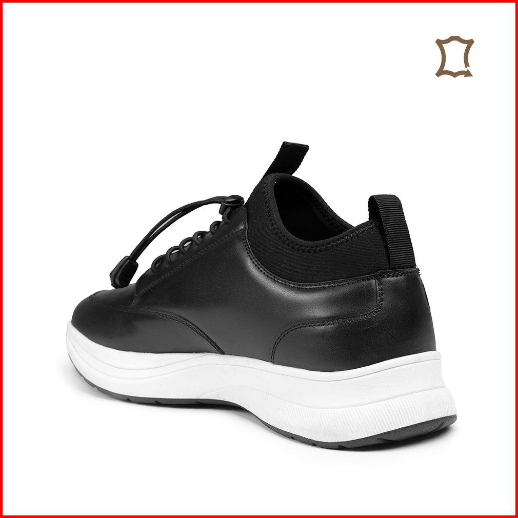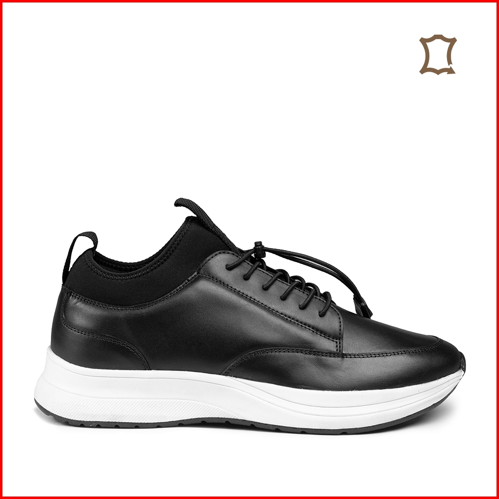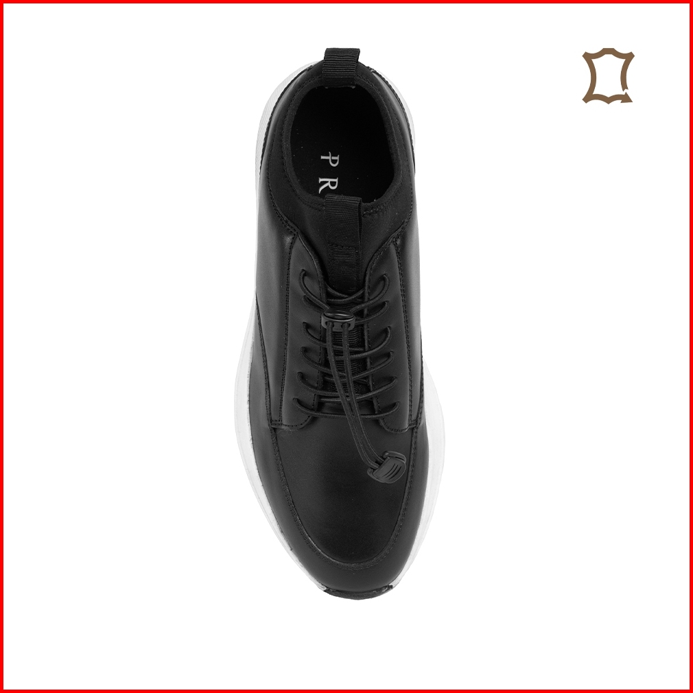 Prabu - Rudi Black White Sepatu Sneakers Kulit Pria-hitam Putih