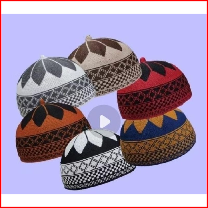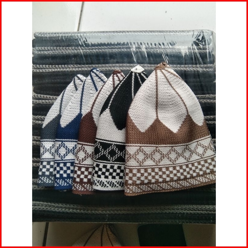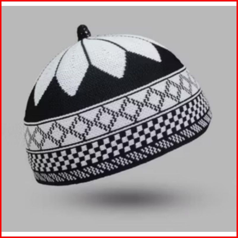 20pcs Peci Rajut Model Turki Yaman Rumi Mercan Kopiyah Motif Dewasa Songkok Hitam Peci Rajut Premium