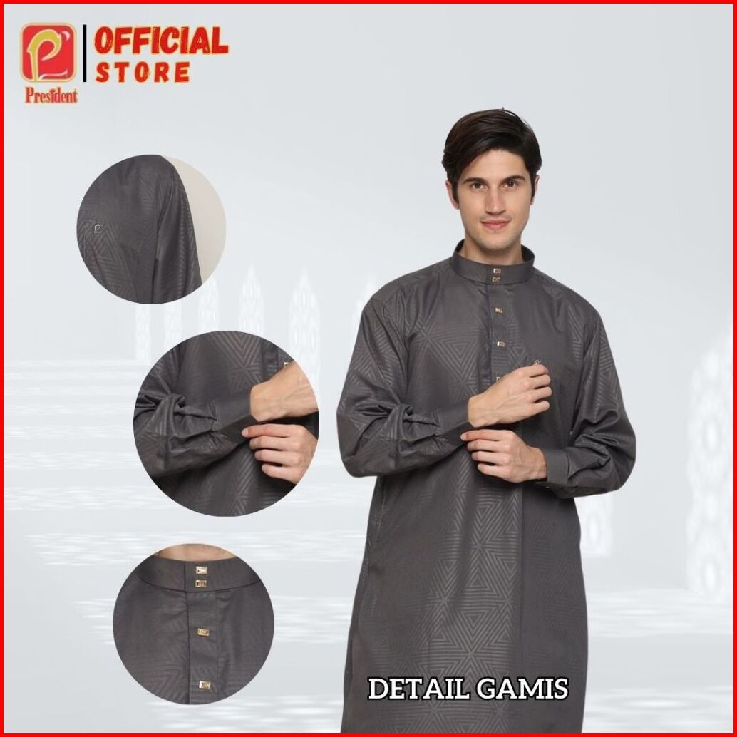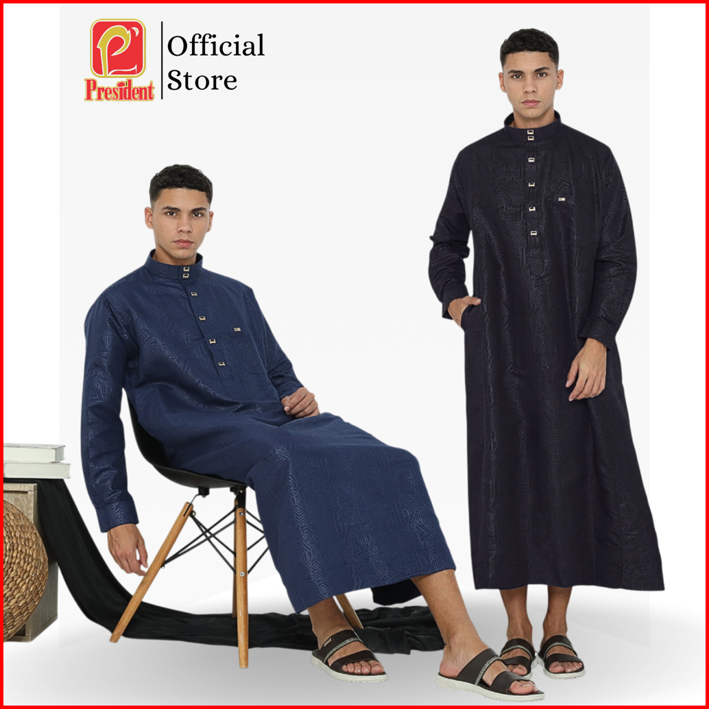President - Gamis Pria Dewasa Remaja Jubah Laki-laki Lengan Panjang Reguler Premium Mikrotik Kerah