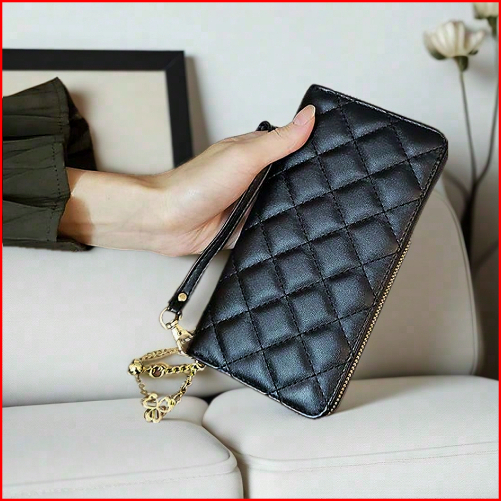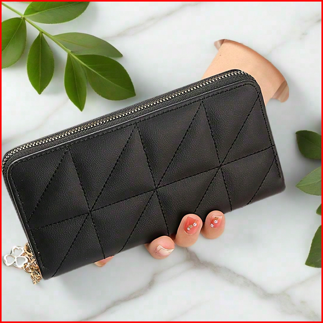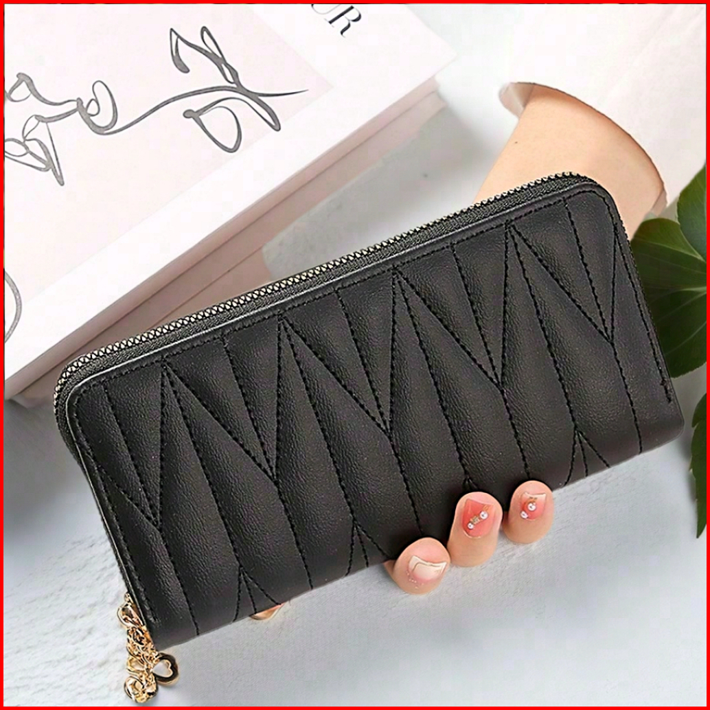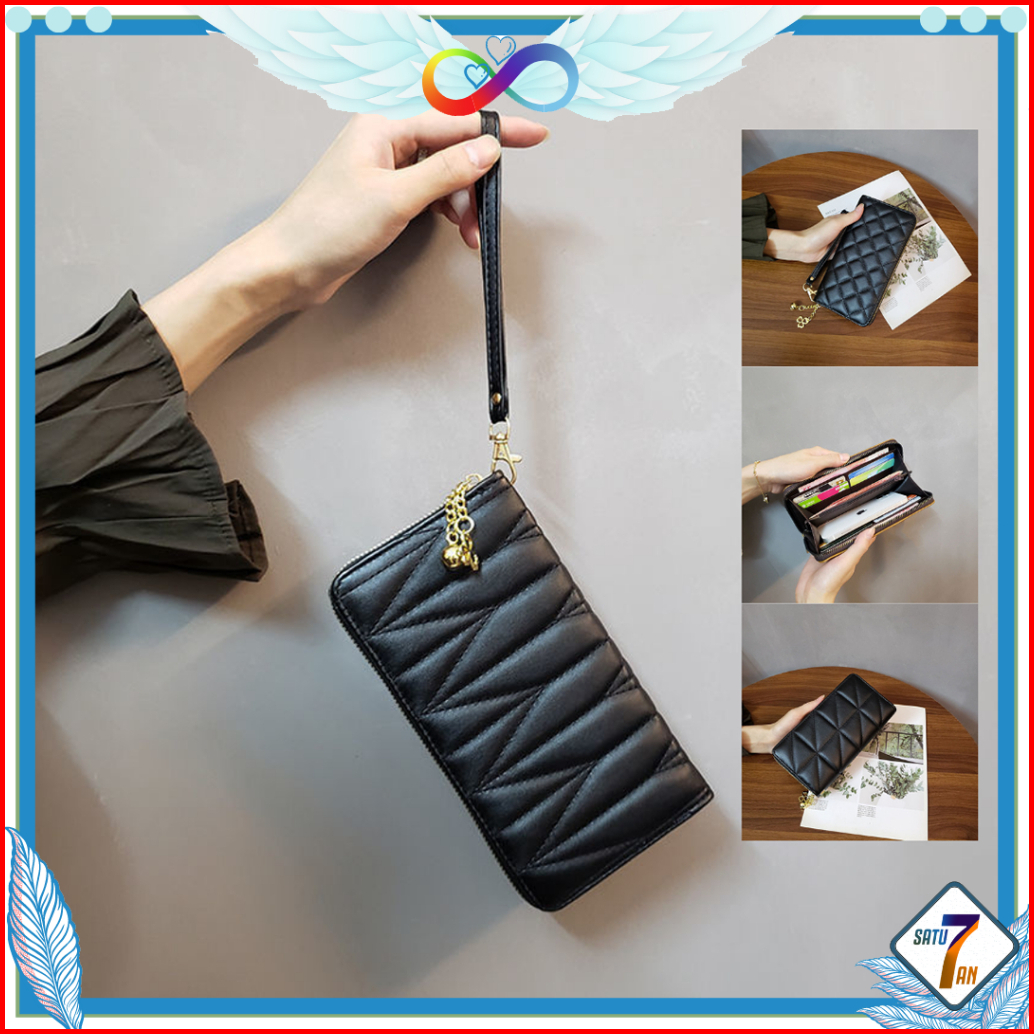 Dompet Wanita Panjang Kulit Pu Hitam Dompet Clutch Hp Zipper Satu7an D83