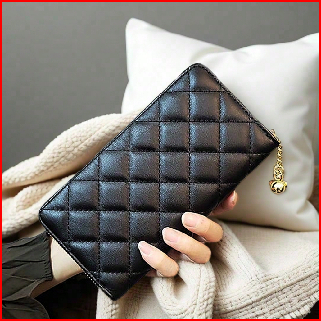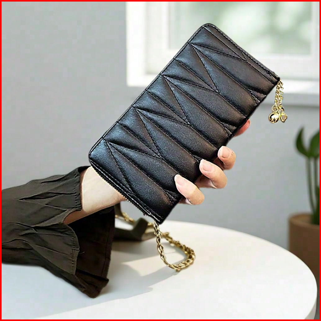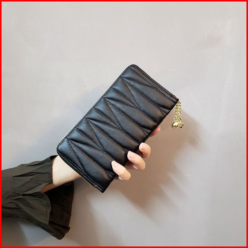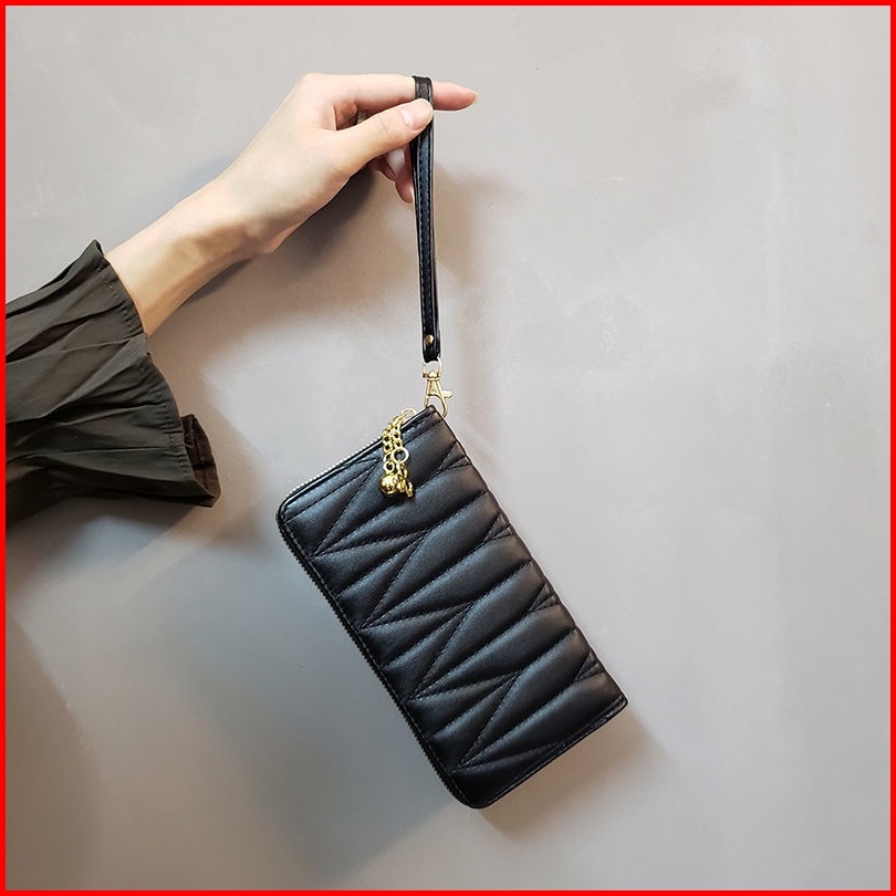 Dompet Wanita Panjang Kulit Pu Hitam Dompet Clutch Hp Zipper Satu7an D83