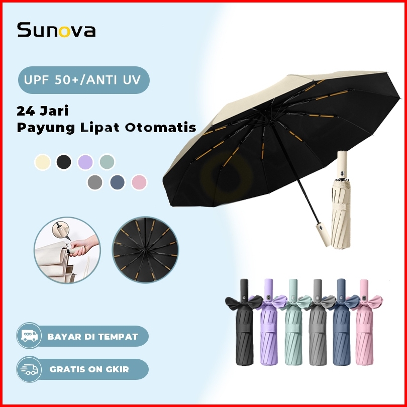 Sunova Payung Lipat Otomatis 24 Tulang Anti Uv Upf50 Hujan Matahari