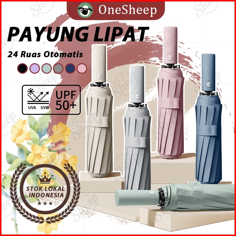 Payung Lipat 24 Ruas Otomatis Buka Tutup Anti Uv Payung Kokoh Payung Hujan Kualitas Premium