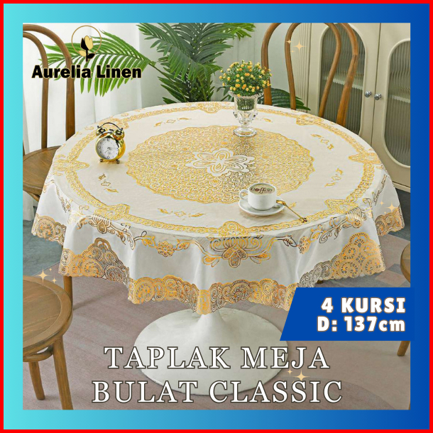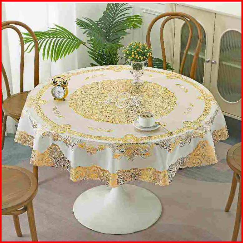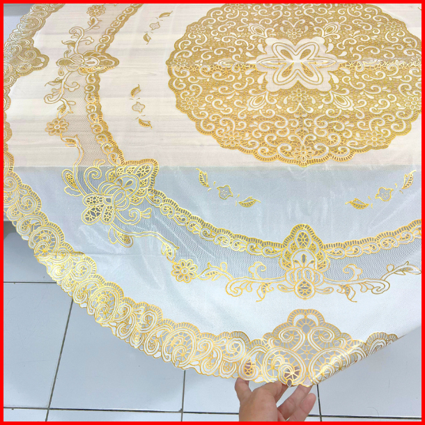 Taplak Meja Makan Bulat Diameter 137cm Motif Bunga Taplak Meja Anti Air Premium-d-r