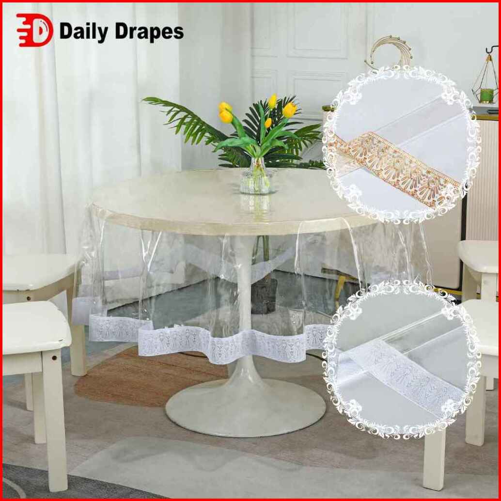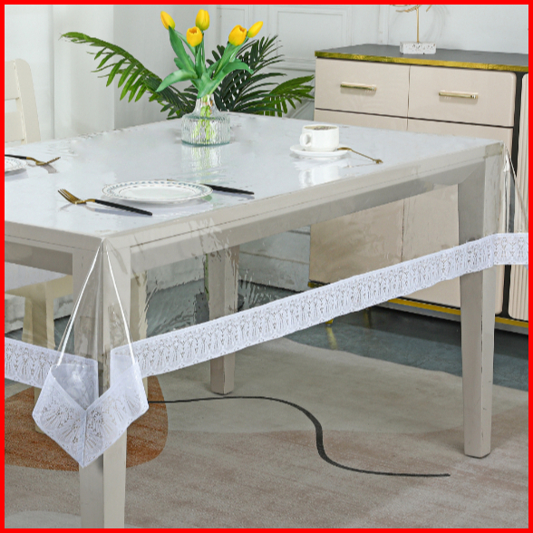 Taplak Meja Pvc Bening Anti Noda Motif Tepi Taplak Warna Putih Cantik Banyak Pilihan Ukuran - C-01