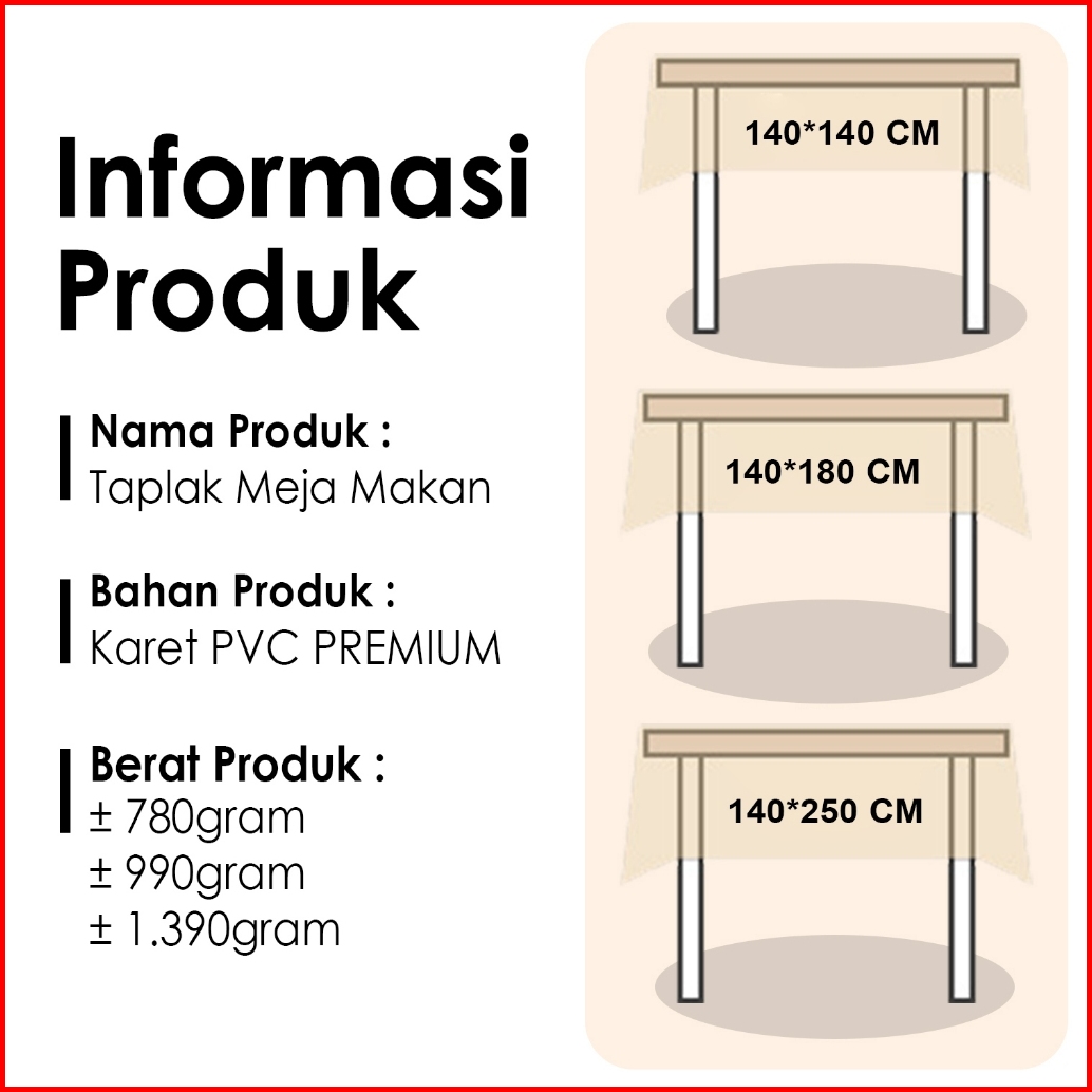 Newroom - Taplak Meja Makan Premium 140x140cm 140x180cm 140x250cm Anti Air Anti Minyak - D49-a B C
