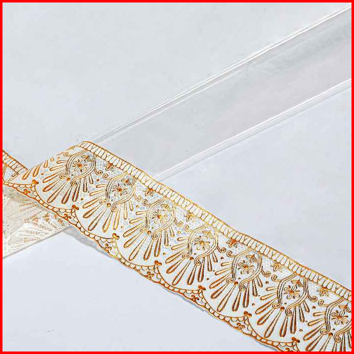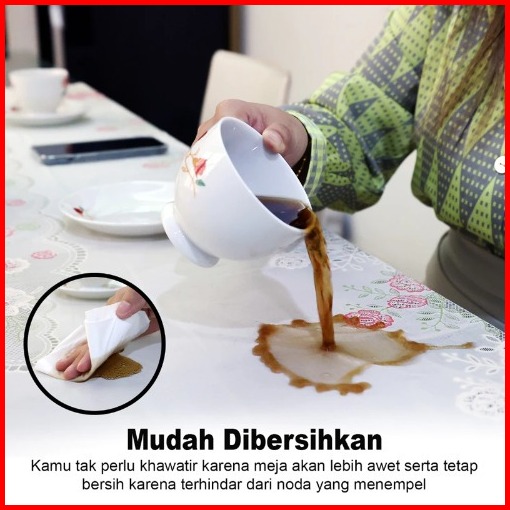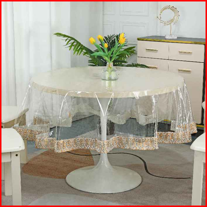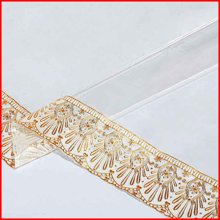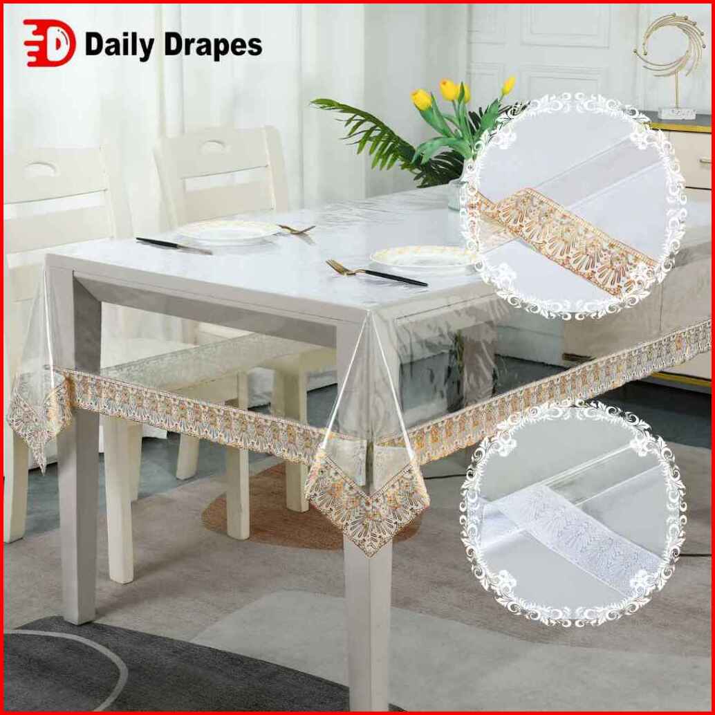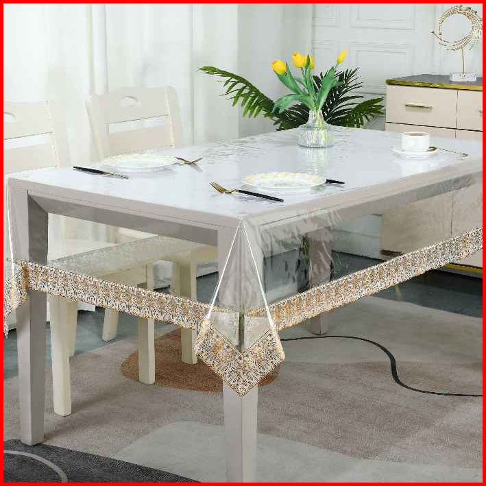 Taplak Meja Pvc Bening Motif Tepi Mewah Dengan Pilihan Bentuk Persegi Panjang Dan Bulat - C-02