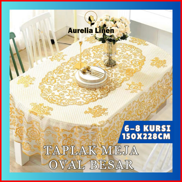 Taplak Meja Oval Size 150x228cm Bahan Pvc Tebal Premium Table Cloth Waterproof D-q Aurelia Linen