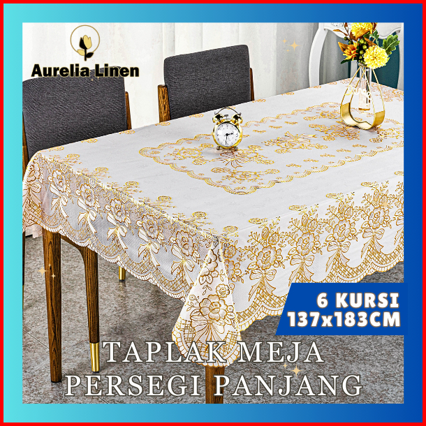 Taplak Meja Makan Uk 137x183cm Taplak Meja Ruang Tamu Premium Bahan Pvc Tebal D-n Aurelia Linen