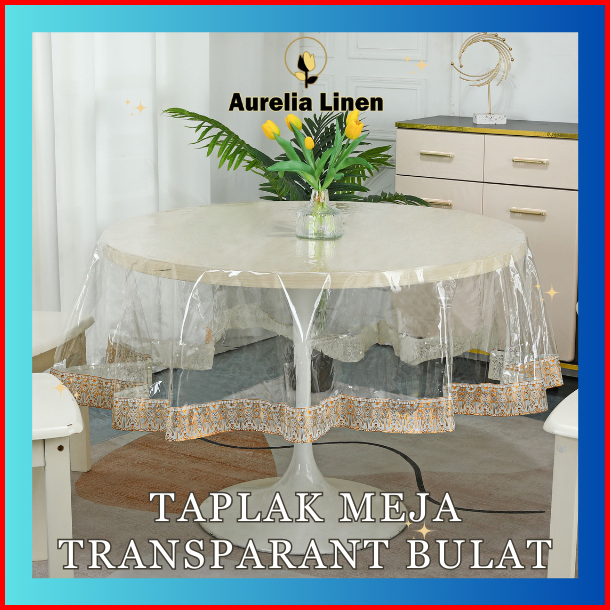 Taplak Meja Transparan Bulat Alas Meja Bening Taplak Meja Makan Bahan Pvc Tebal C-l-m Aurelia Linen