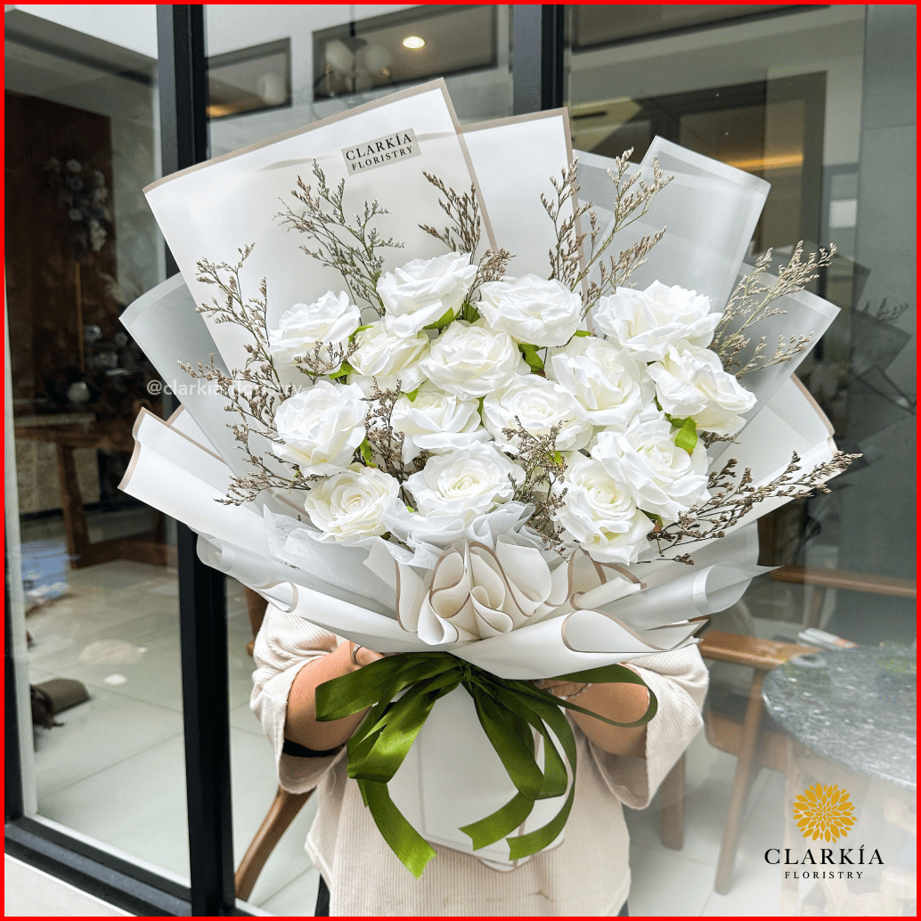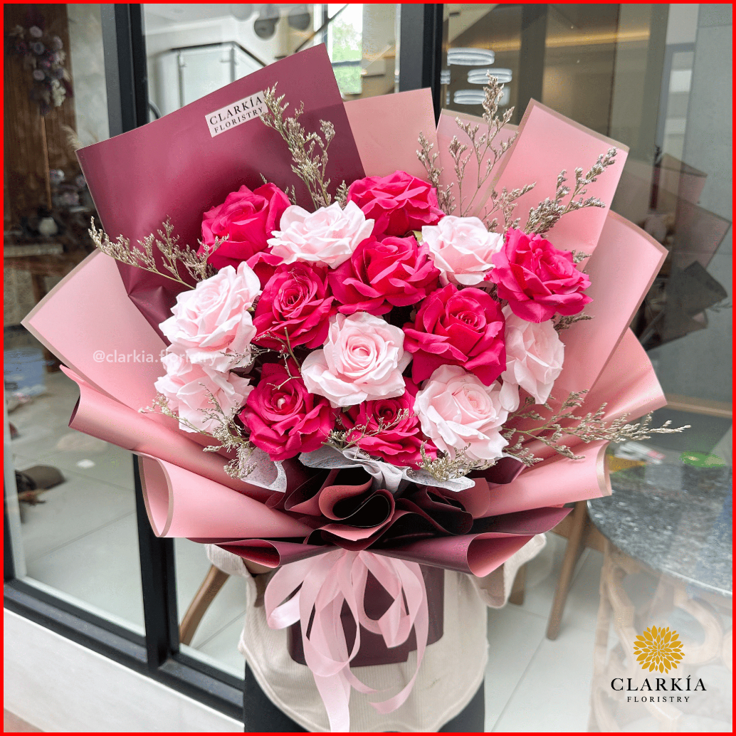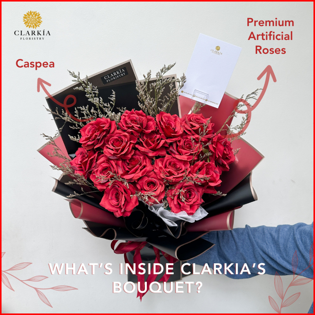 Clarkia Floristry Ori Artificial 15 Stem Rose Flowers Bouquet Bunga Buatan Buket Mawar 15pcs Tangkai Hadiah Kado Gift Wi