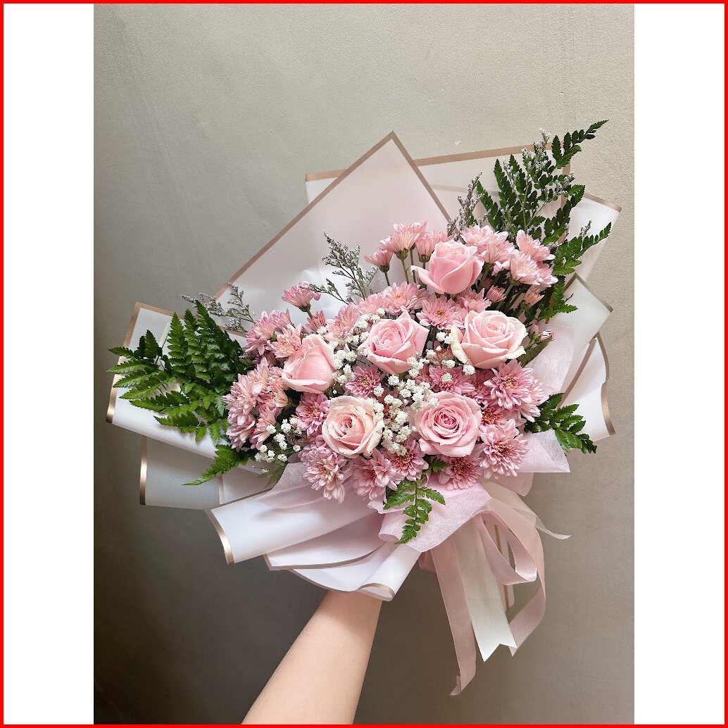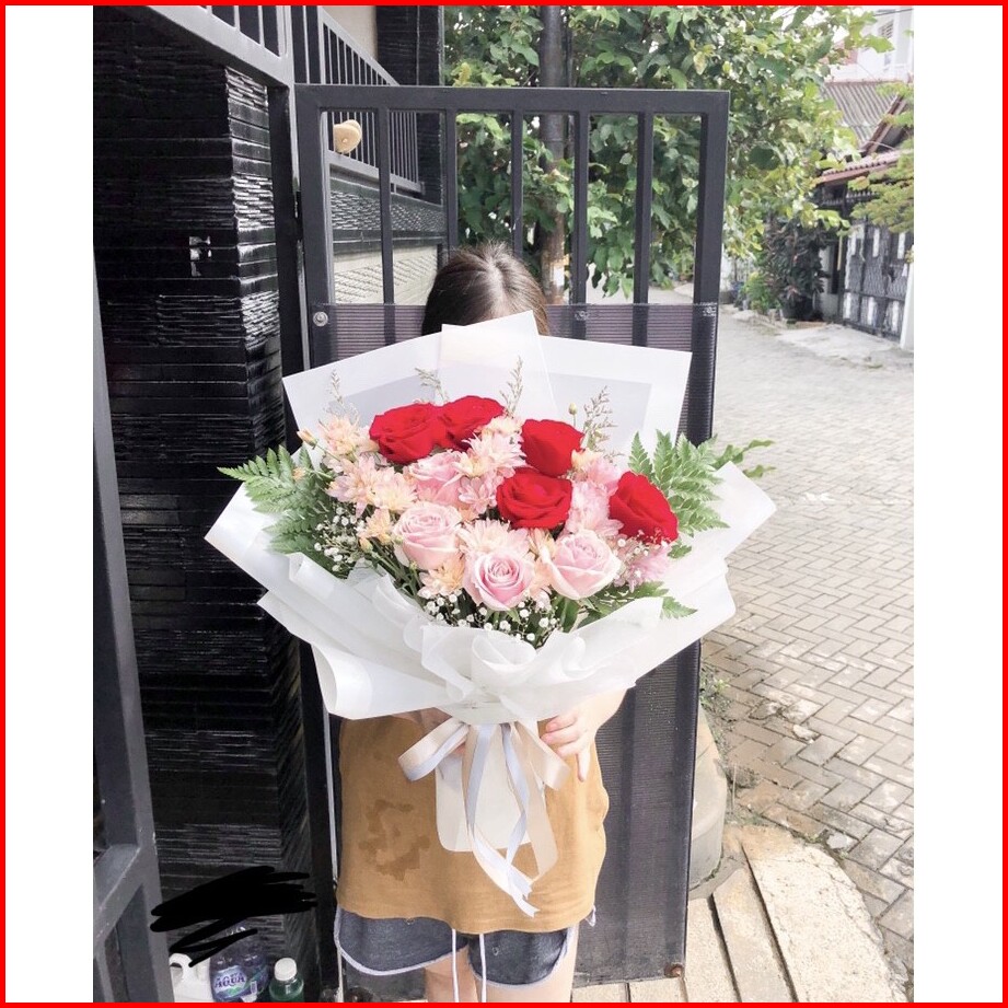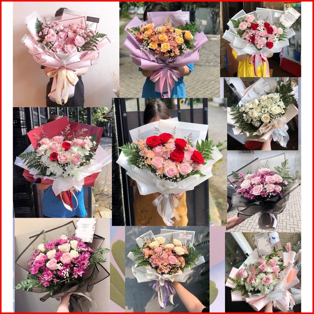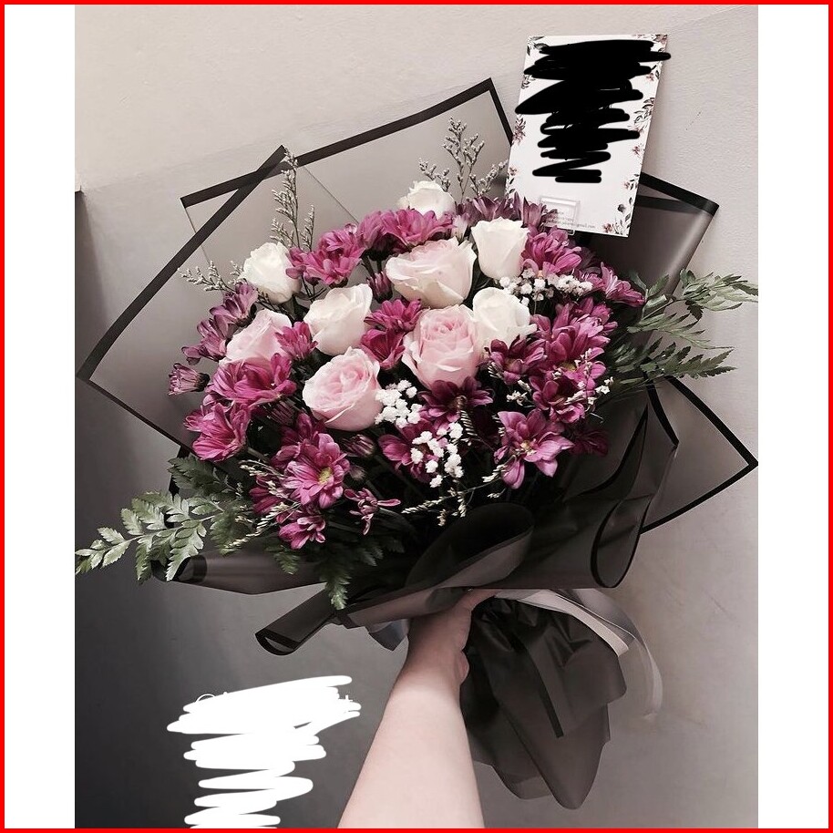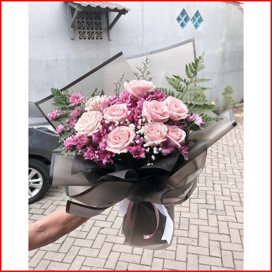 Buket Bunga Aster Dan 9 Mawar Segar Bouquet Bunga Rose Fresh Buket Ulang Tahun Hadiah Birthday Kado Anniversary Wisuda G