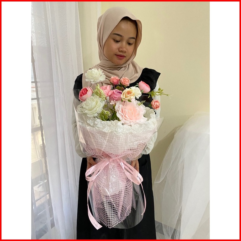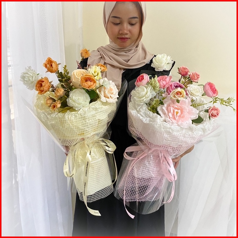 Dandelion Secret - Ready Stock Quinn Round Artificial Bouquet Buket Bunga Palsu Kado Ultah Wisuda Wedding Anniversary Mo
