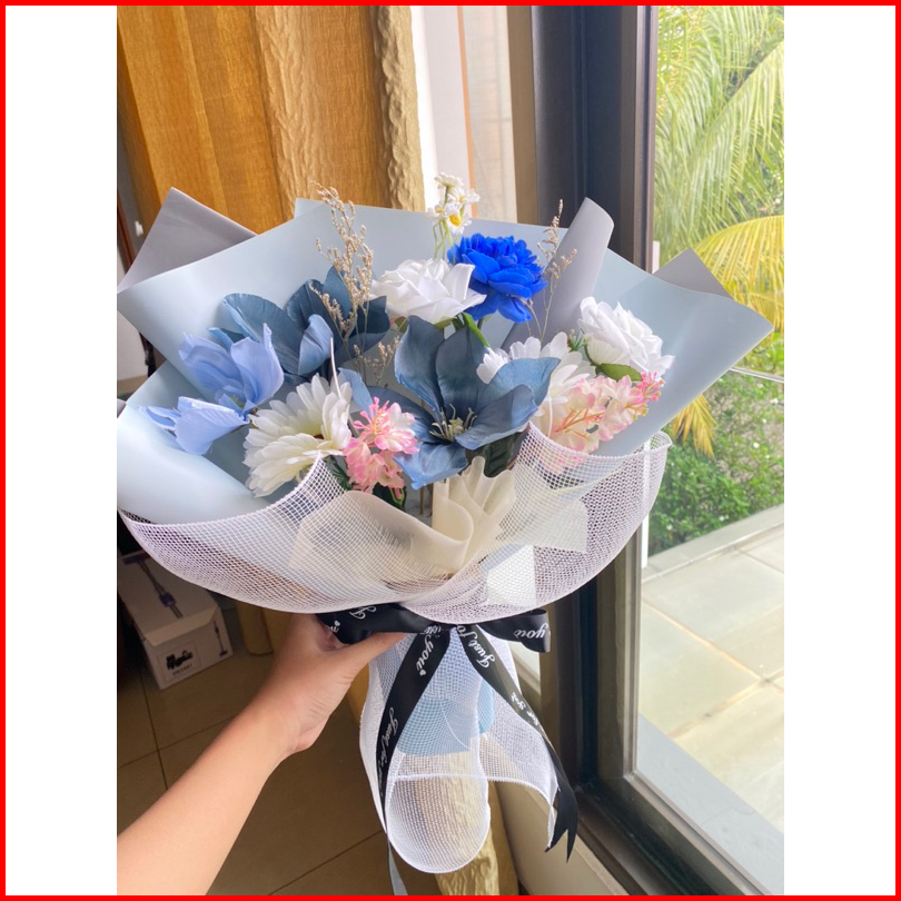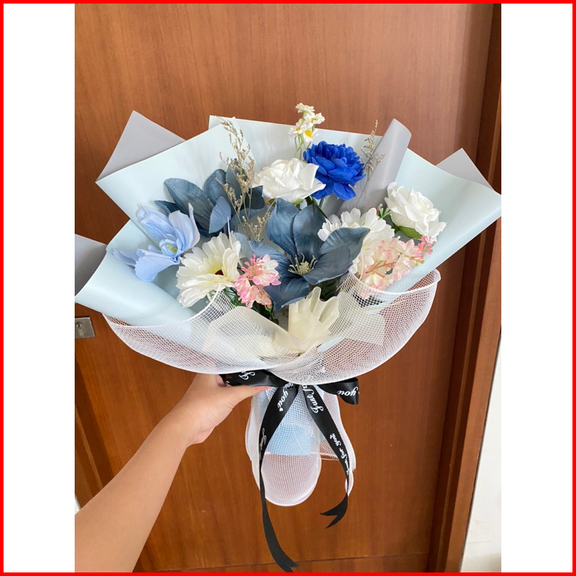 Buket Bunga Aesthetic Buket Artificial Buket Biru Buket Blue Mix Buket Cewek Buket Cowok Ready Buket Wisuda