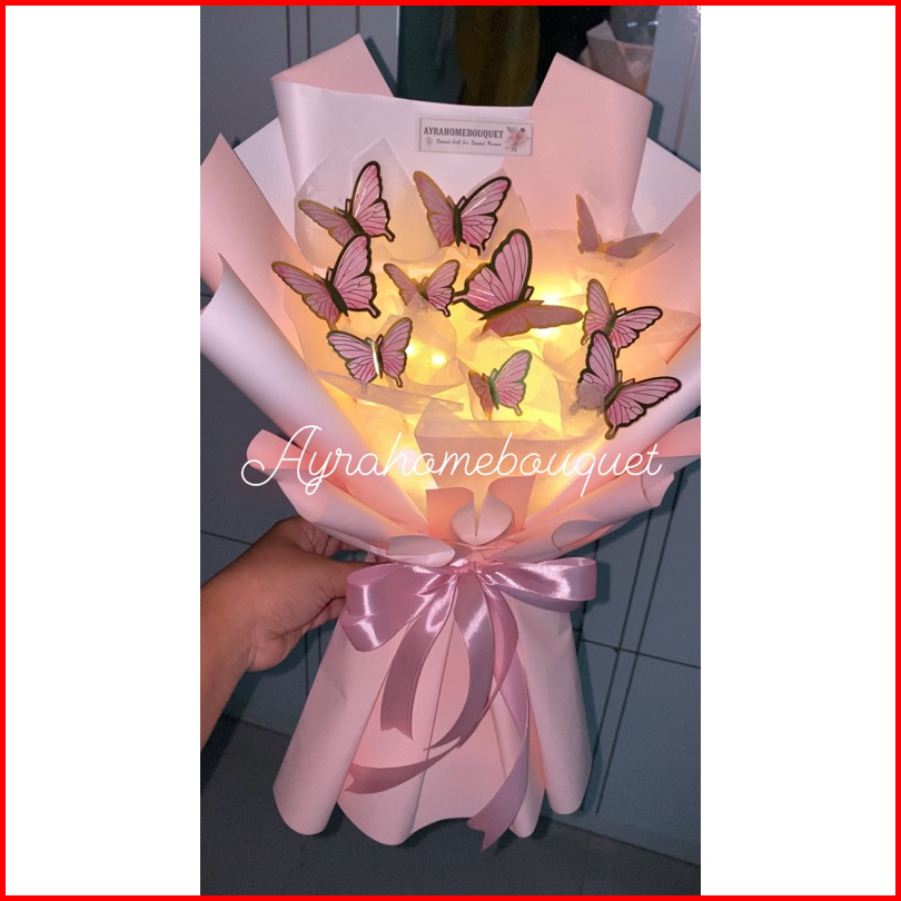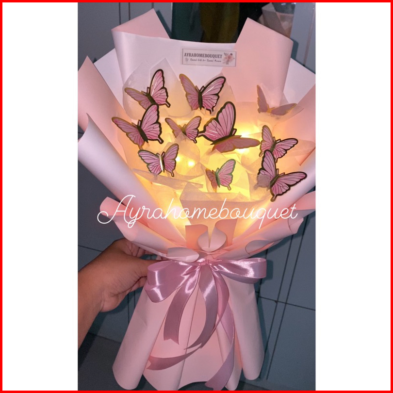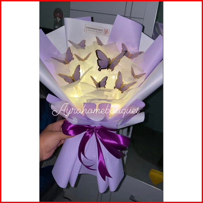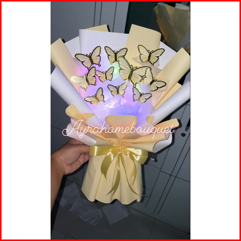 Butterfly Bouquet Buket Bunga Kupu-kupu Led Lampu For Gift Hadiah Kado Wedding Wisuda Anniversary Ultah Birthday