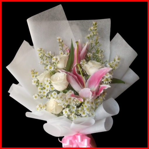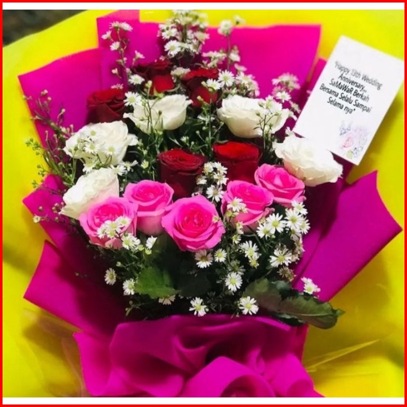 5 tangkai mawar, 10 tangkai mawar, 15 tangkai mawar, 20 tangkai mawar, 5 mawar + 1 LYLY, 3 MAWAR + 1 COKLAT, 2 mawar mix aster